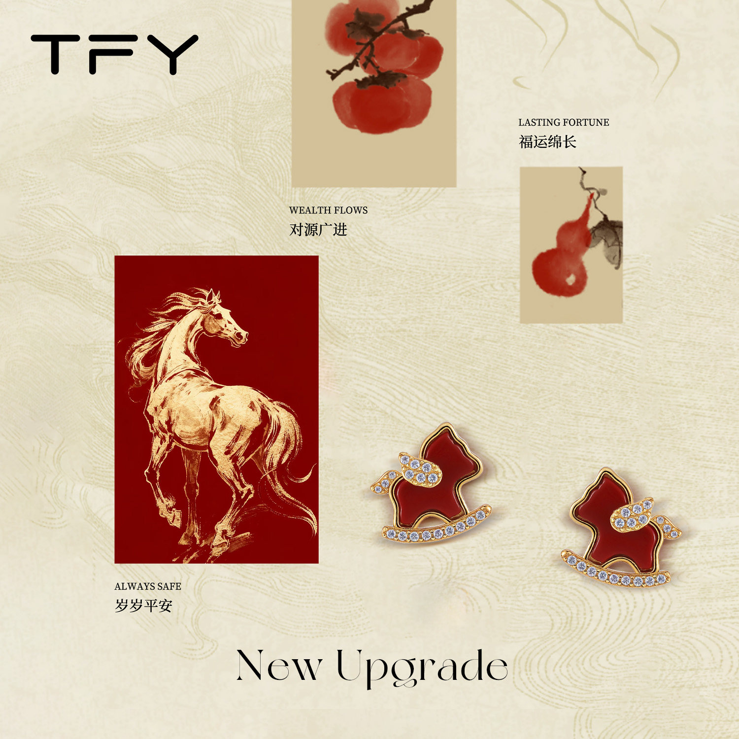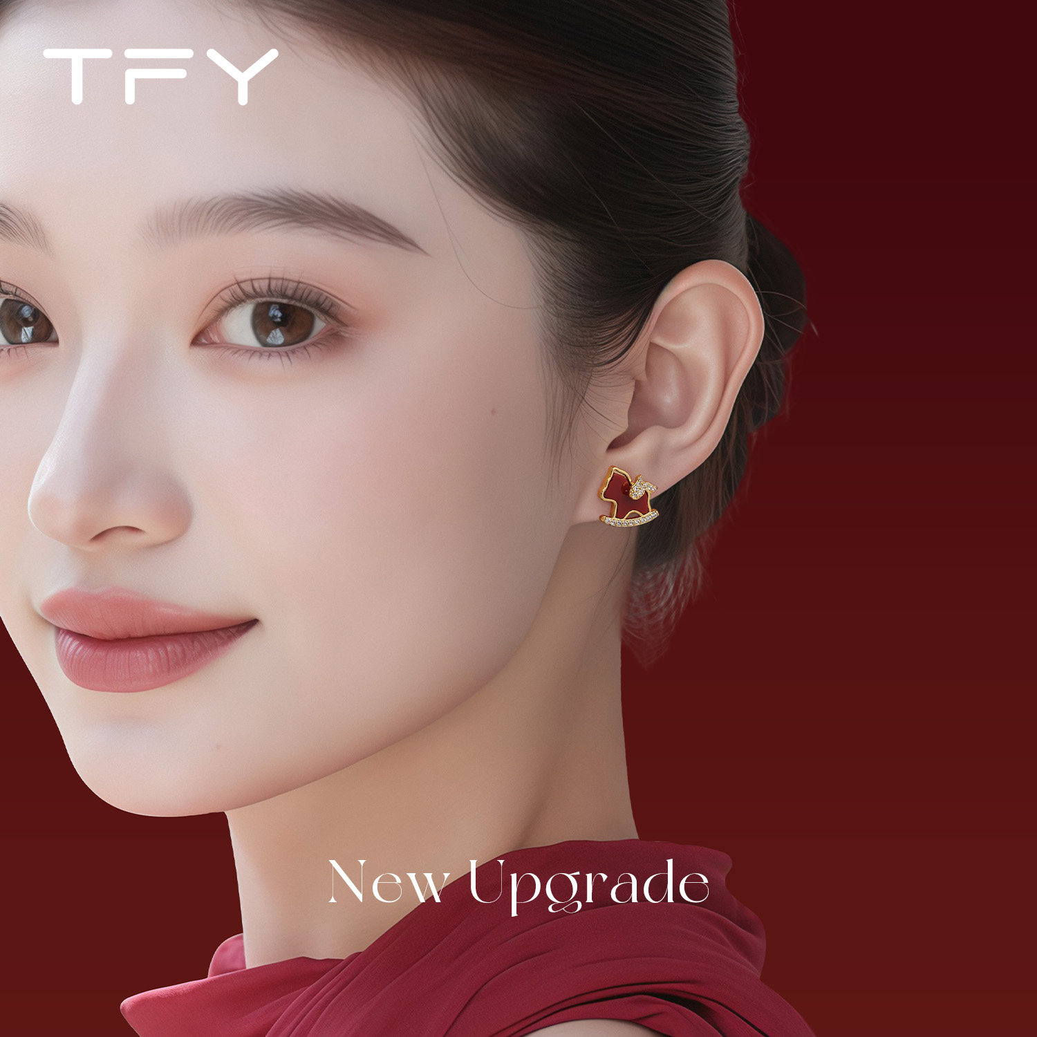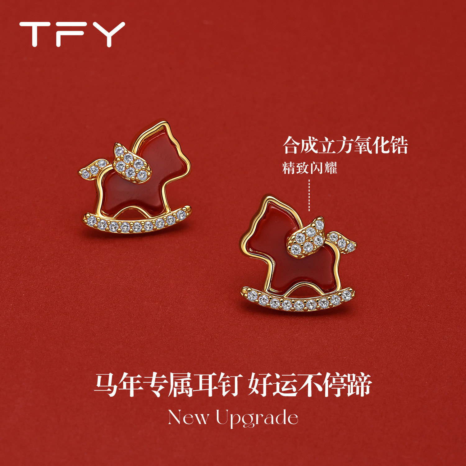 天猫tfy旗舰店,红色小马耳钉2025新款爆款高级感轻奢精致小巧马上有钱本命年耳饰
