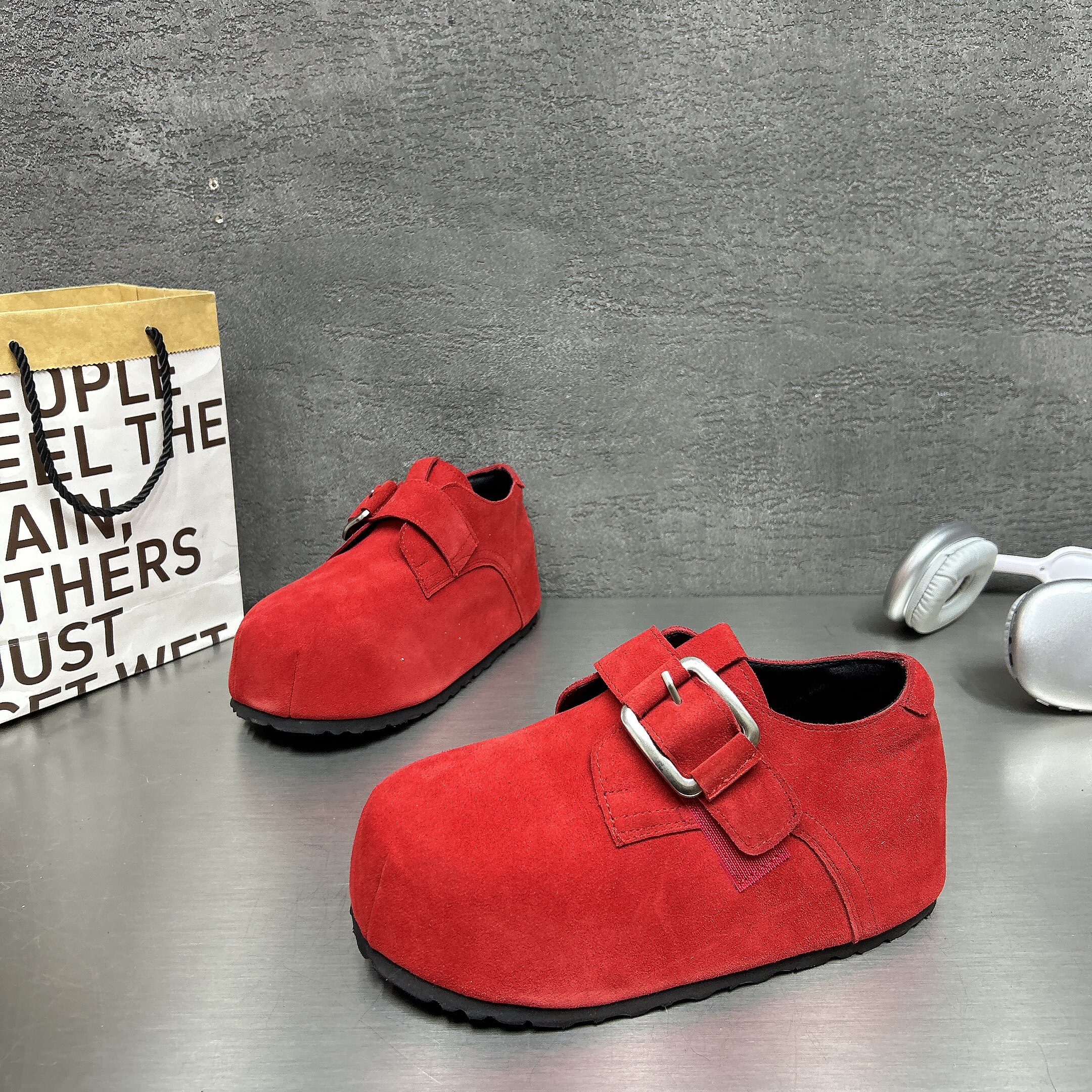 淘宝五星鞋业,红色2026春新款真皮勃肯鞋女厚底增高休闲卡皮巴拉一脚蹬懒人单鞋