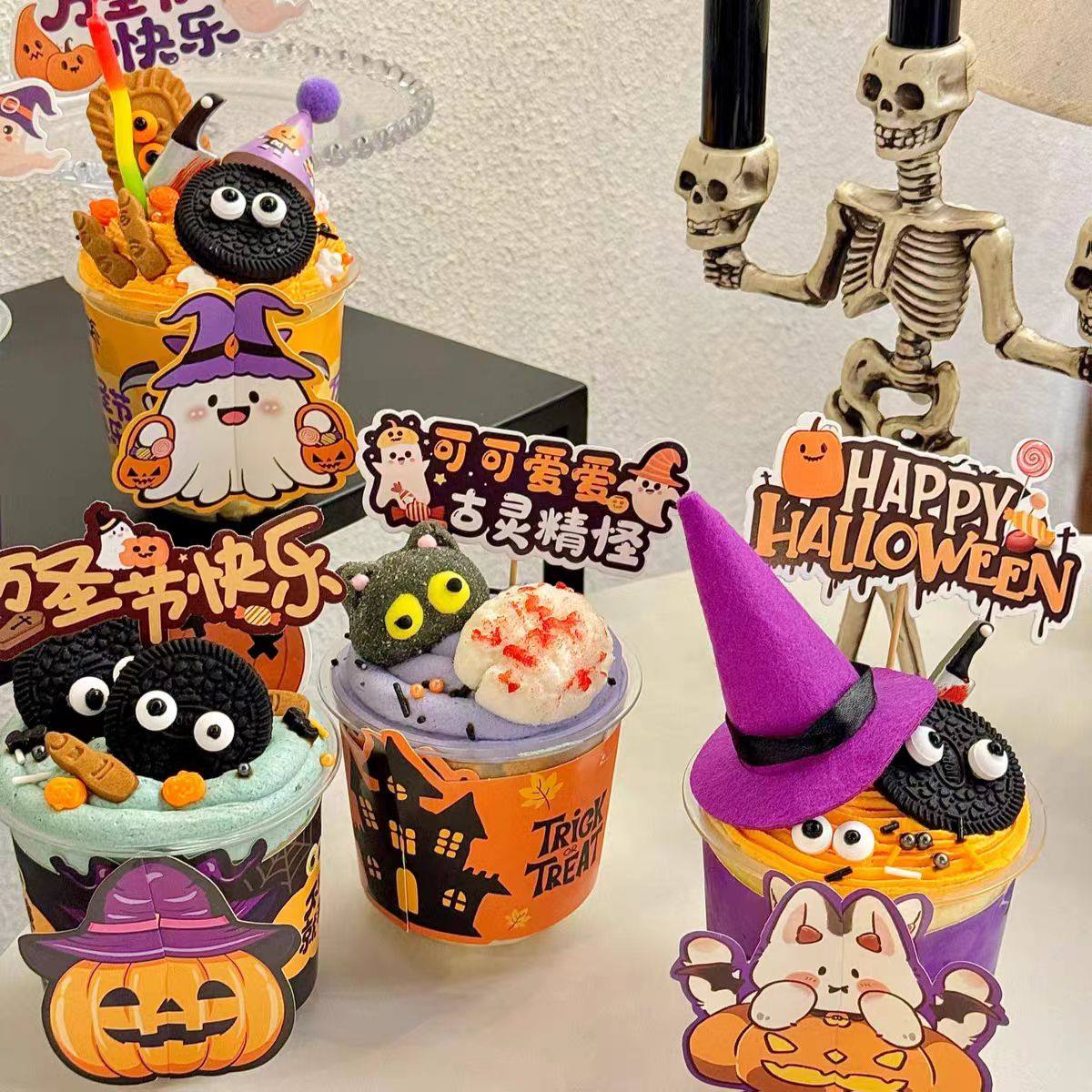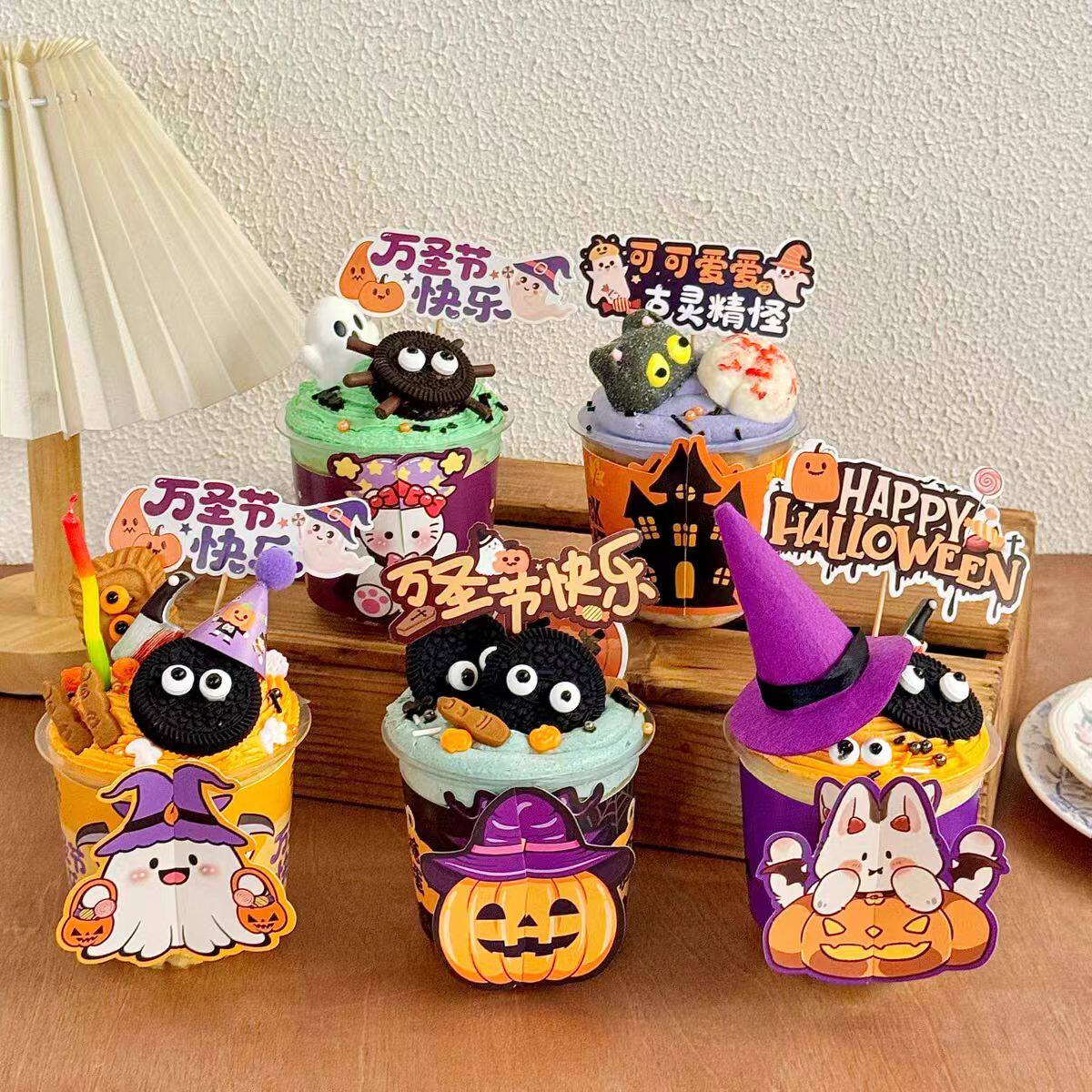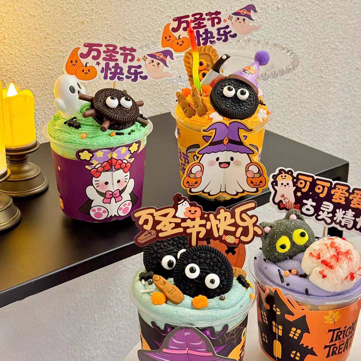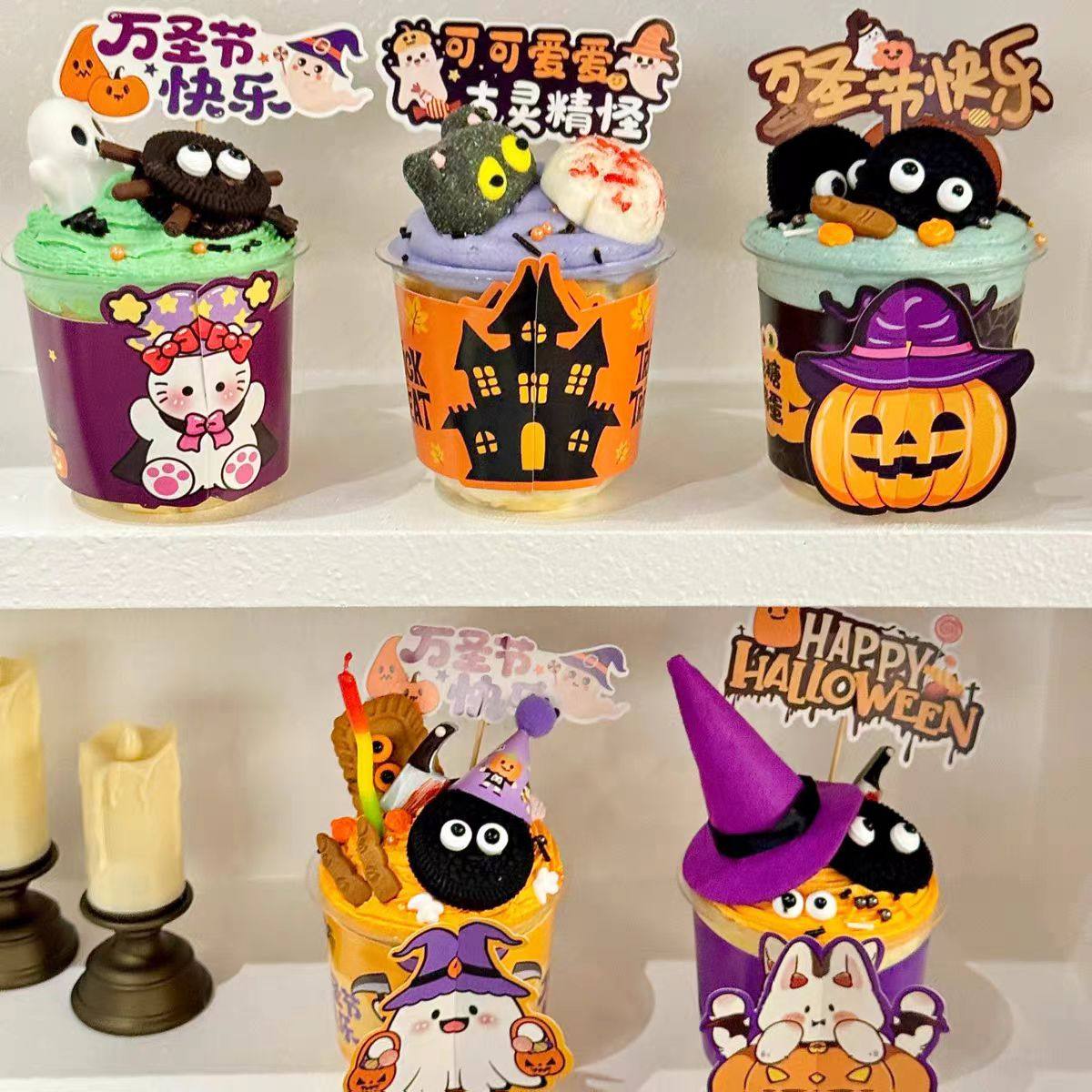 淘宝果果酱烘焙坊,2025万圣节南瓜幽灵甜品啵啵杯杯套烘焙装扮插件波波杯蛋糕装饰