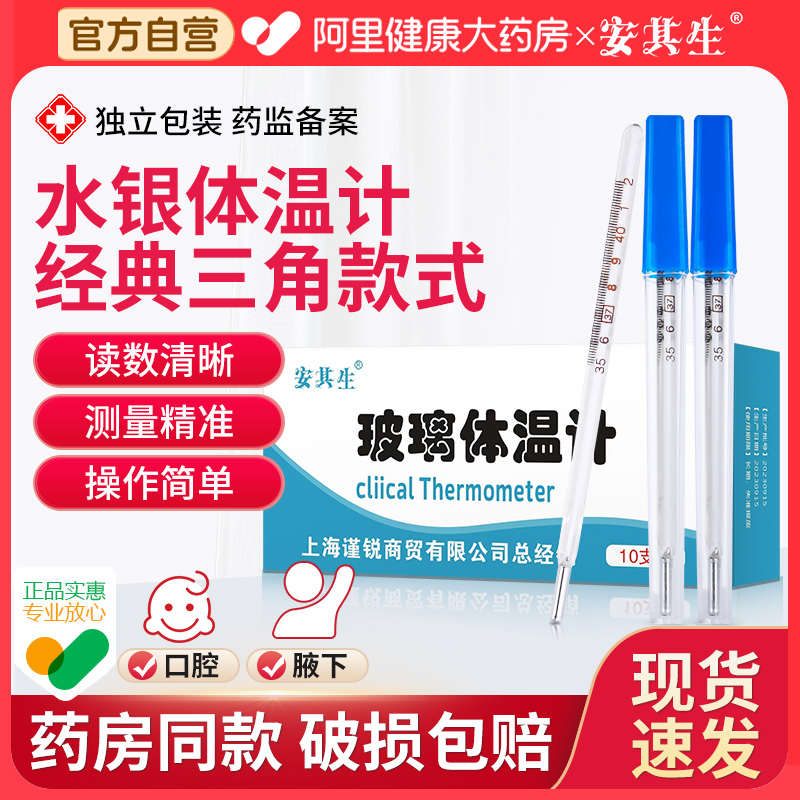 天猫阿里健康大药房,安其生水银体温计温度计测温婴儿儿童医用专用老式家用腋下式精准