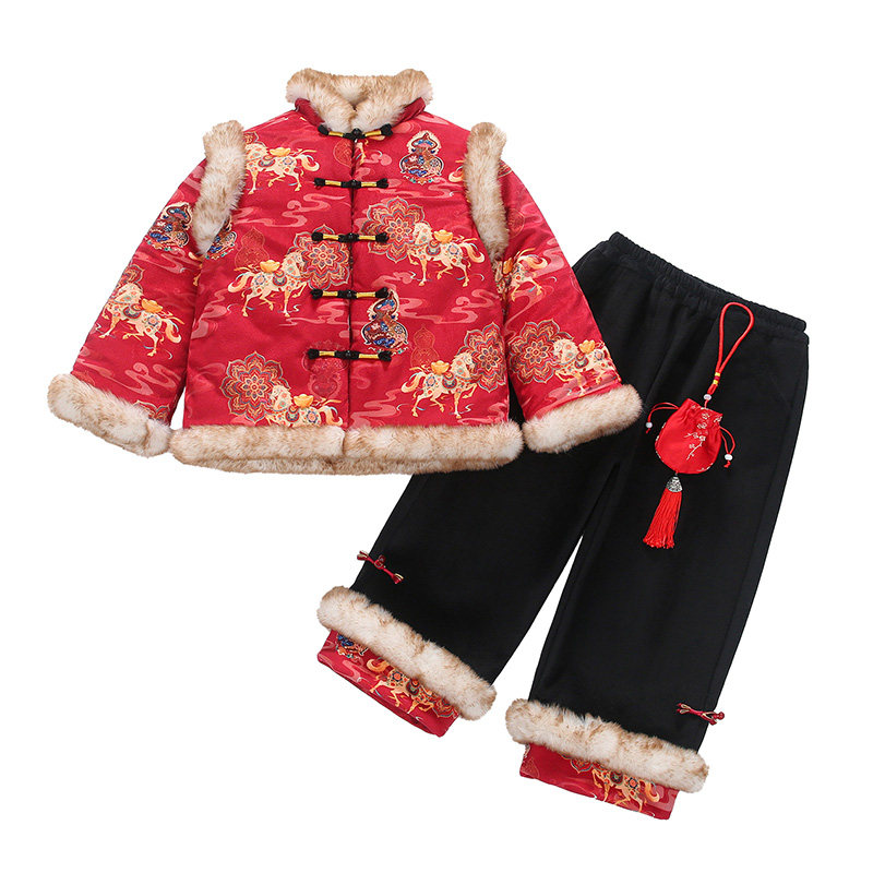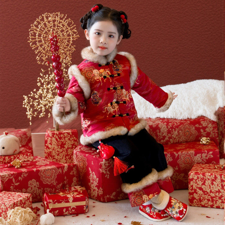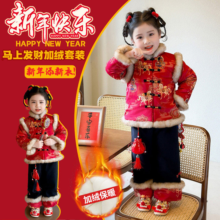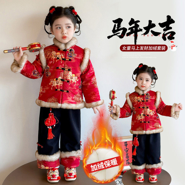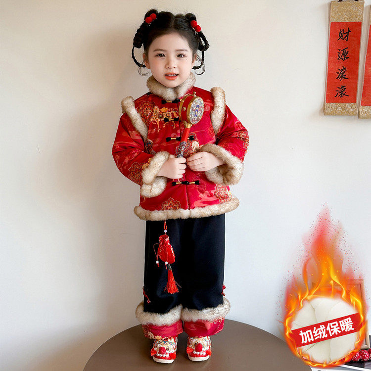 淘宝鹿圆童装店,女童红色套装喜庆加绒加厚拜年服