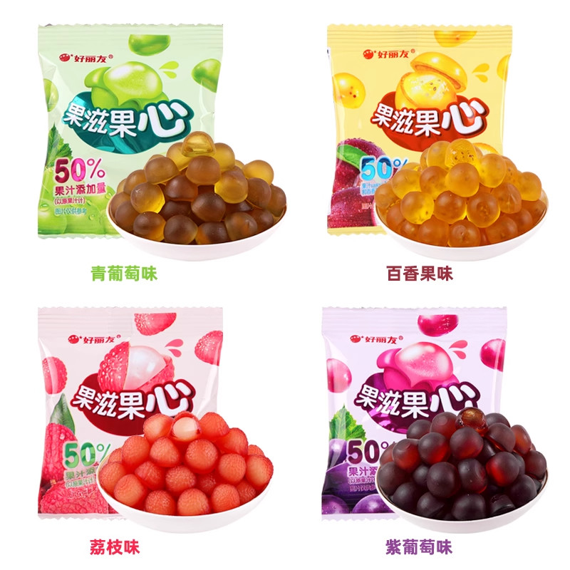 天猫邦航食品专营店,好丽友果滋果心剥皮软糖百香果紫葡萄青葡萄荔枝多种口味解馋零食