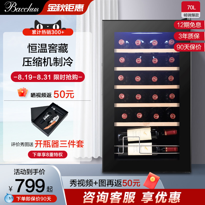 天猫bacchus旗舰店,bacchus /芭克斯yc-70恒温红酒柜,24瓶精品小钢炮,榉木层架名牌压缩机。