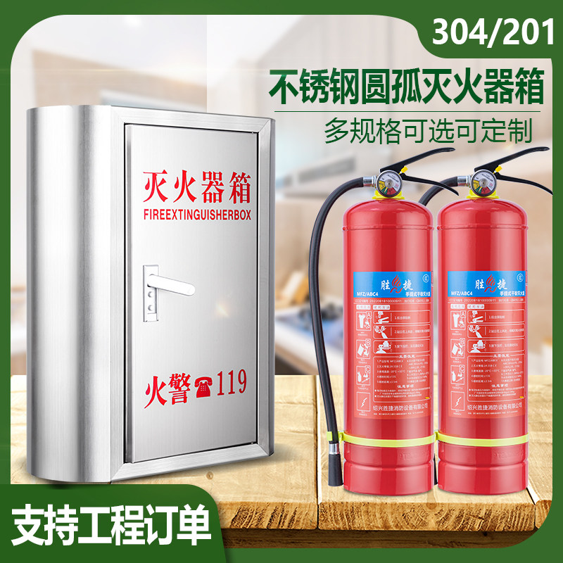 淘宝杭州消防器材,灭火器箱不锈钢消防箱304圆弧形灭火器箱子4kg幼儿园商场酒店专用