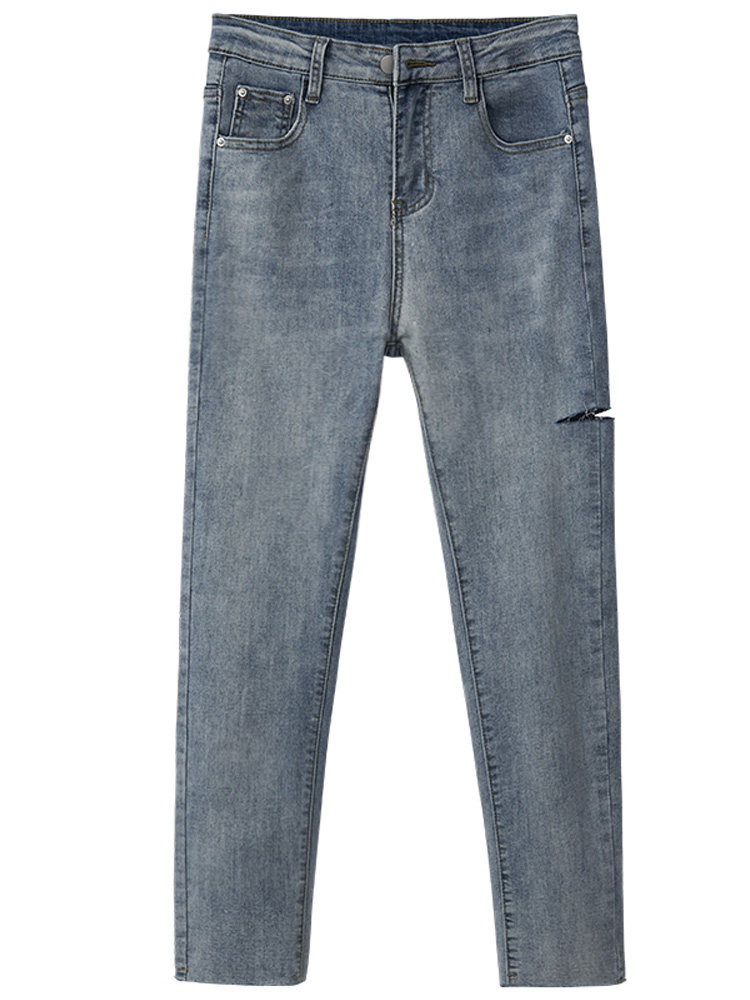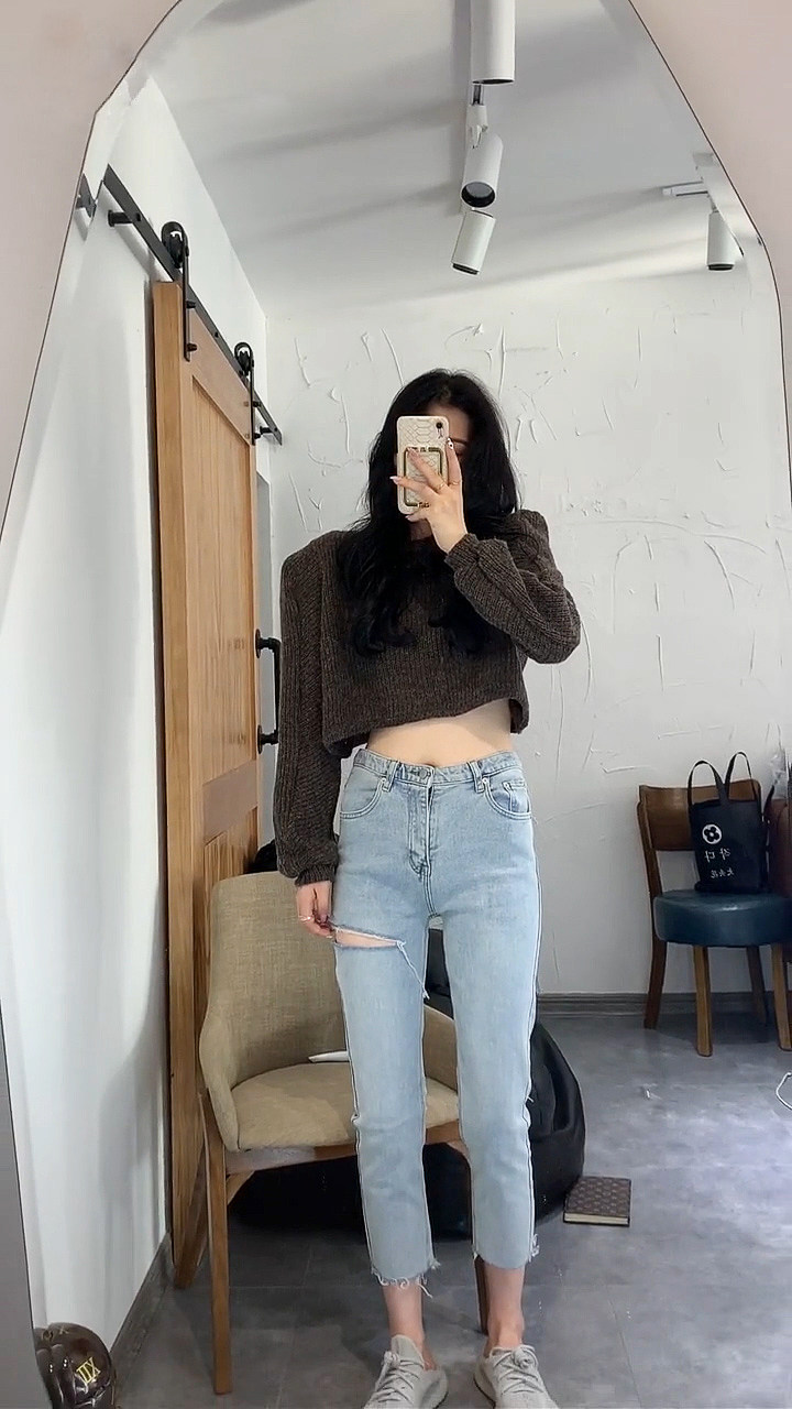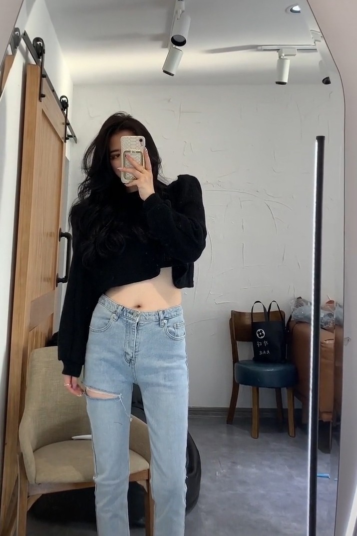淘宝诱货胖美人,破洞2023夏季高腰弹力烟管裤牛仔裤