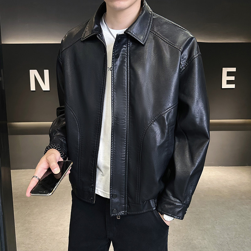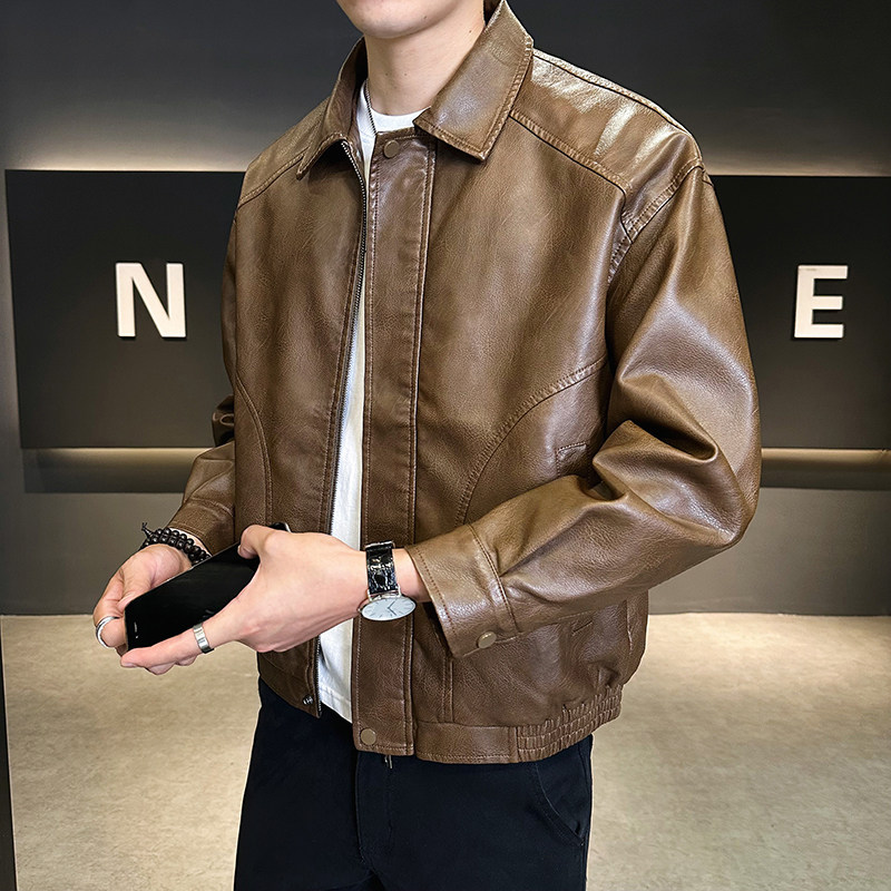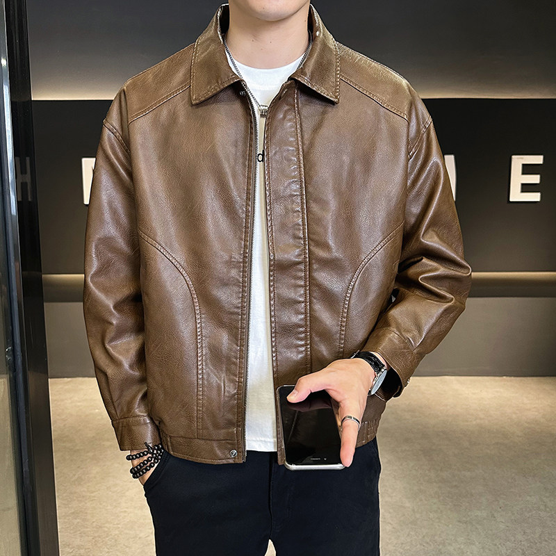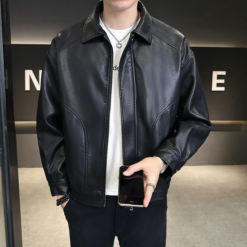 天猫柒度非凡旗舰店,个性帅气雅痞复古潮牌翻领皮衣,翻领帅气机车皮夹克,潮牌雅痞男装皮衣外套