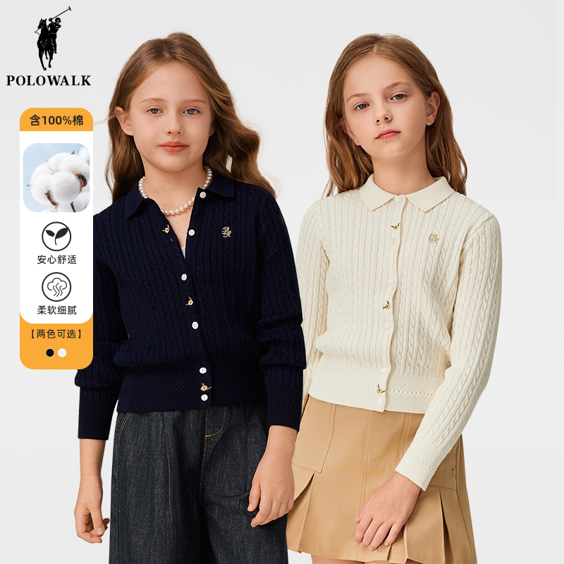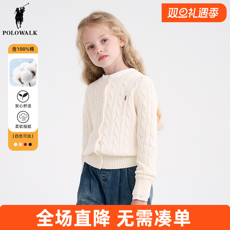 淘宝POLOWALK童装折扣店,Polowalk女童针织开衫绞花学院风