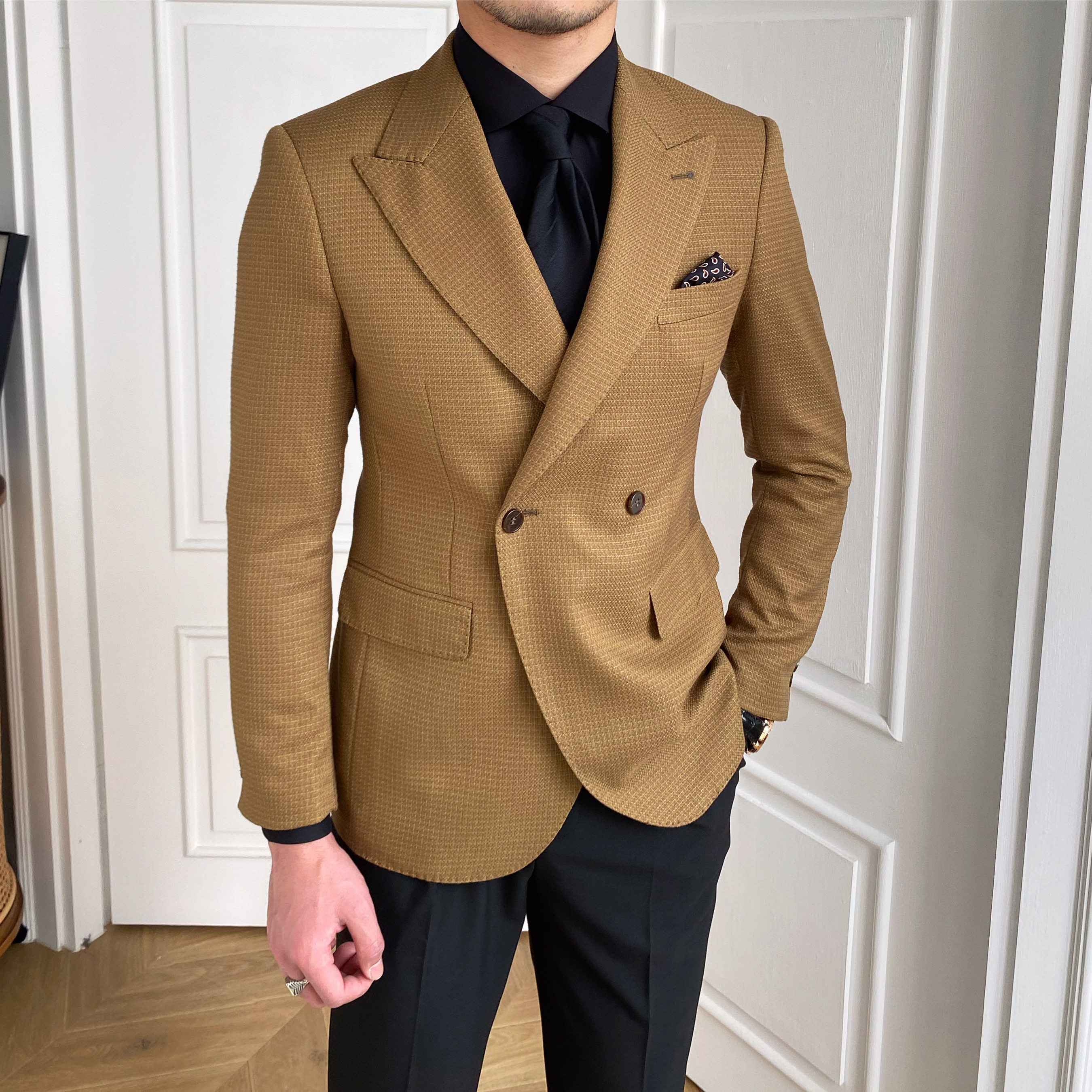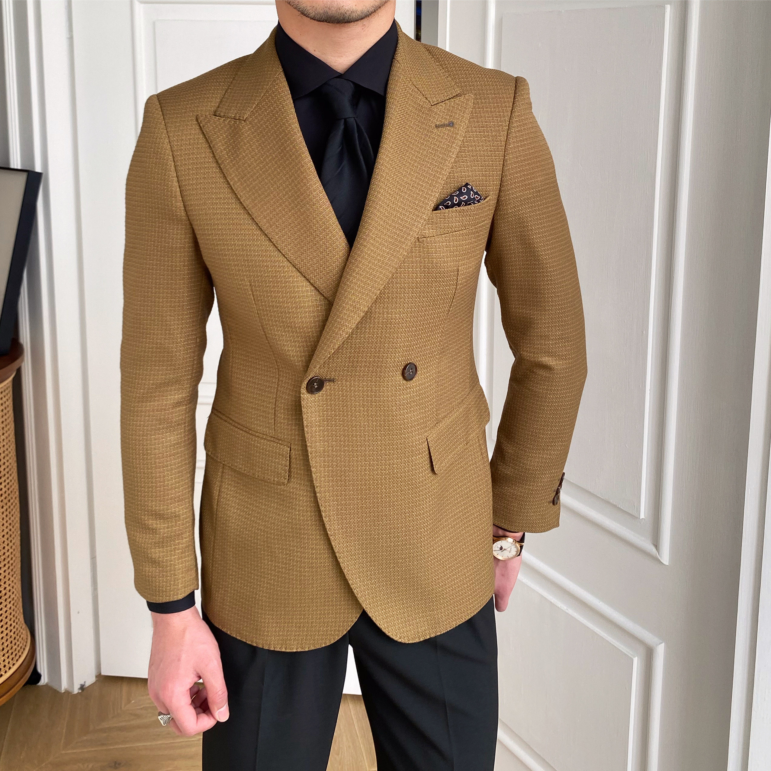 淘宝鹿三先生,一粒双排扣西服戗驳领
