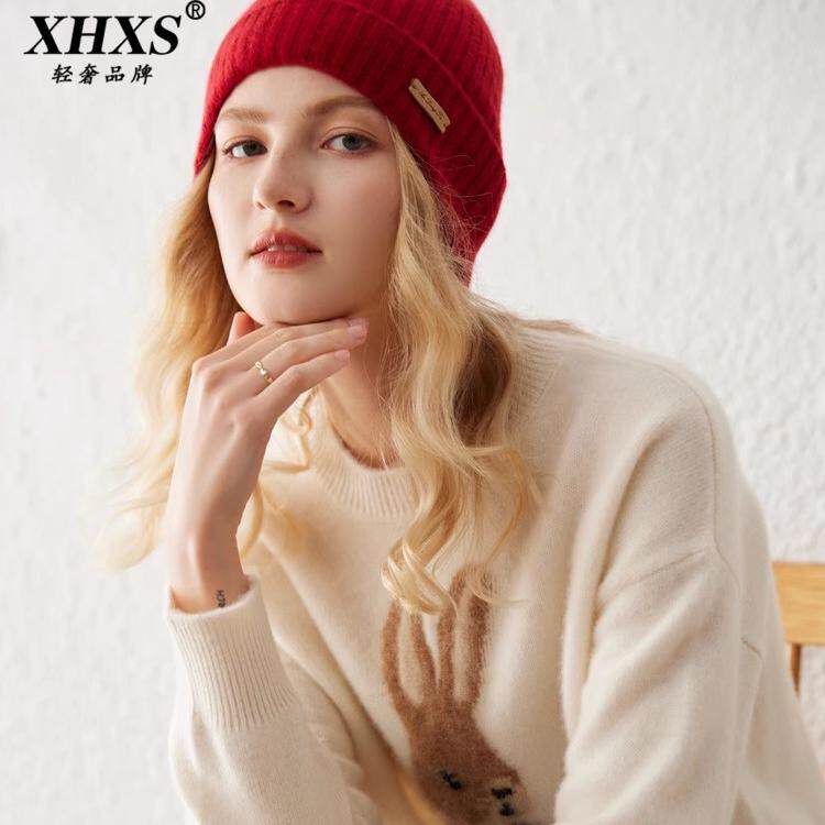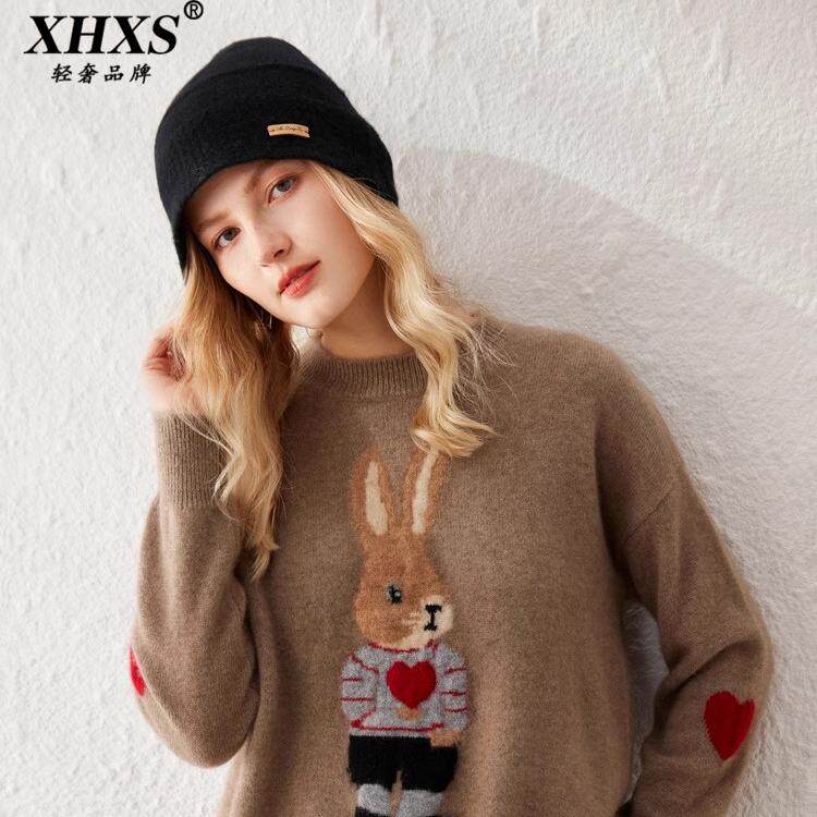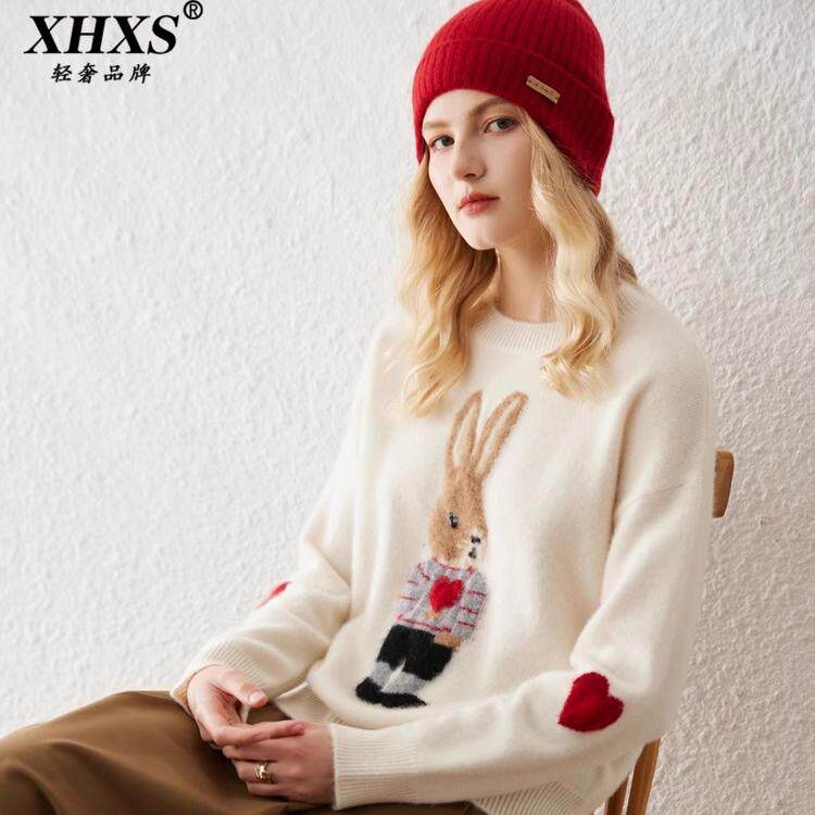天猫XHXS旗舰店,XHXS卡通提花羊绒衫宽松套头