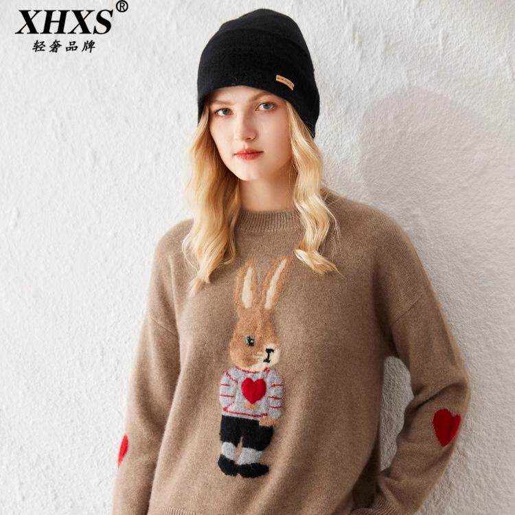 XHXS卡通提花羊绒衫宽松套头
