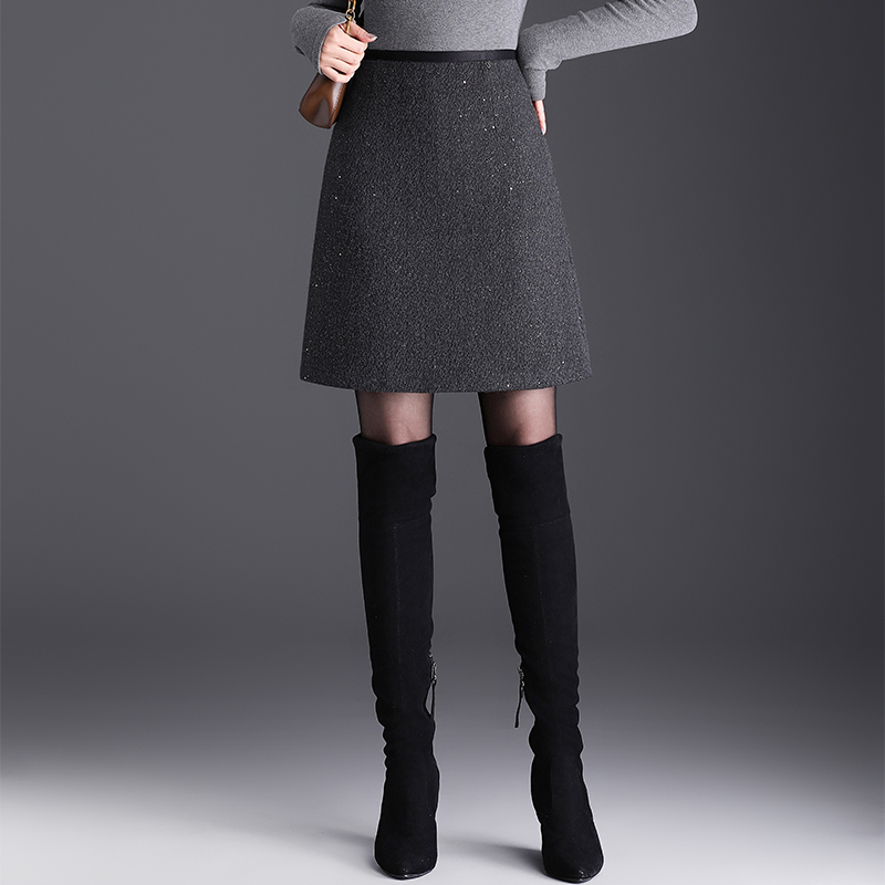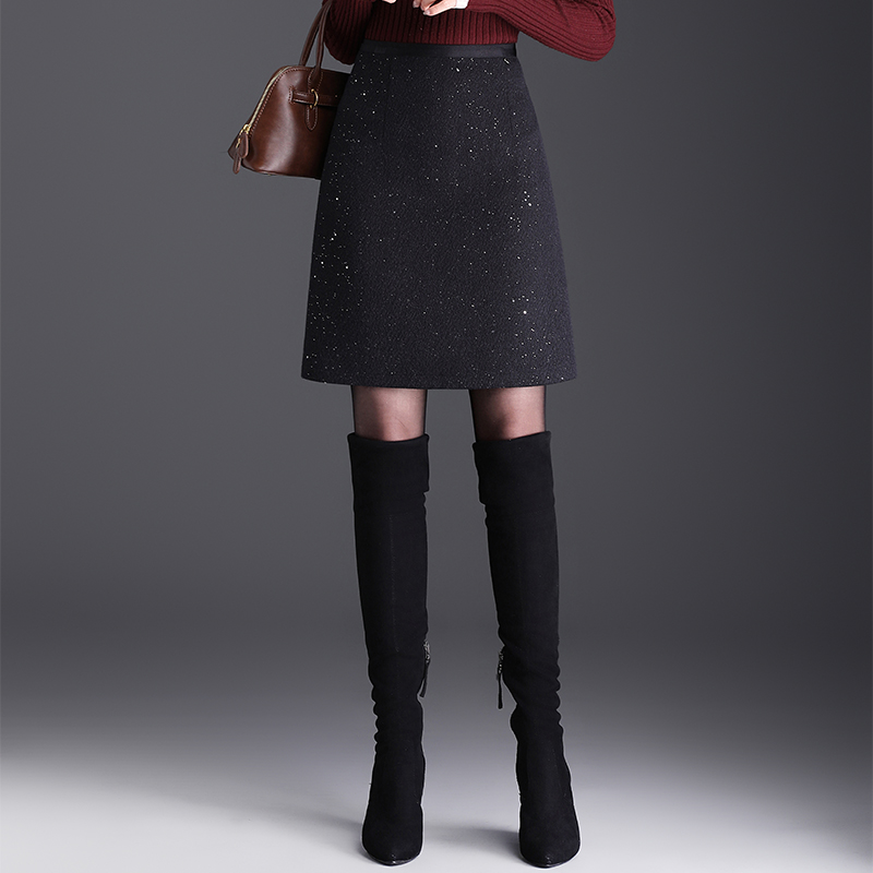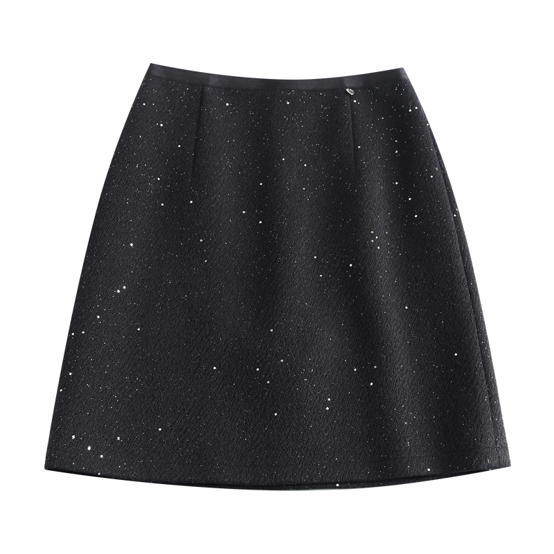 天猫麦卡莎旗舰店,显瘦半身短裙a字裙女秋冬2024年加厚星空亮片毛呢短款裙子一步裙