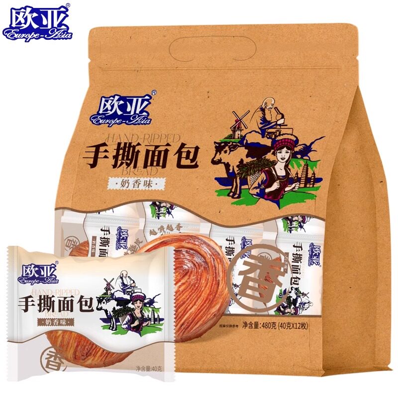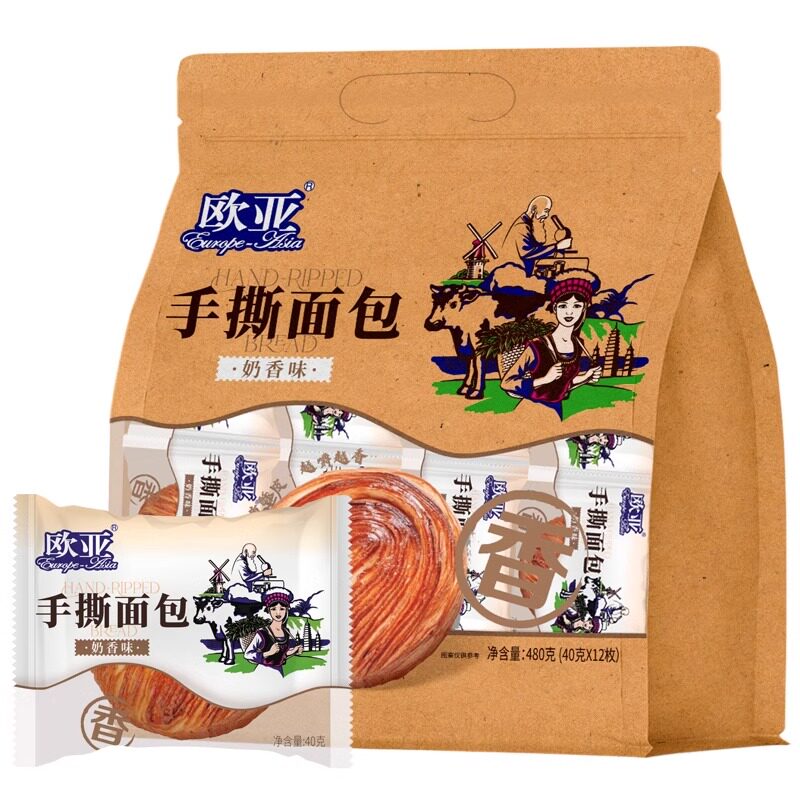 淘宝云佰味,欧亚手撕面包早餐蛋糕点心健康休闲食品零食代餐40g*12枚/包