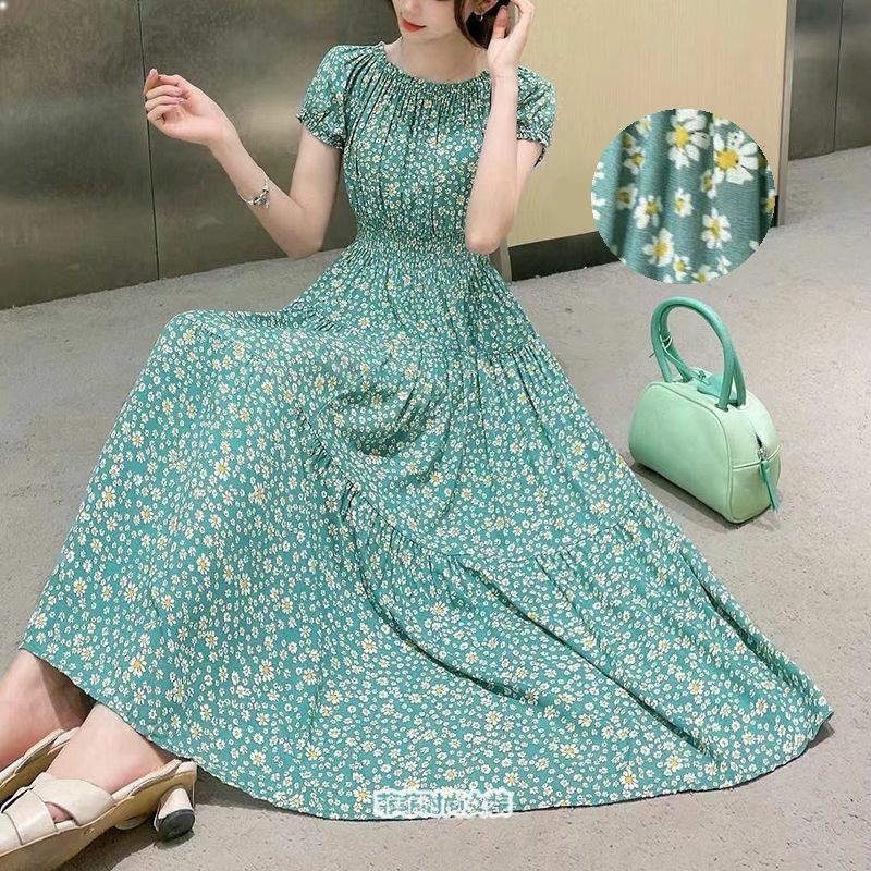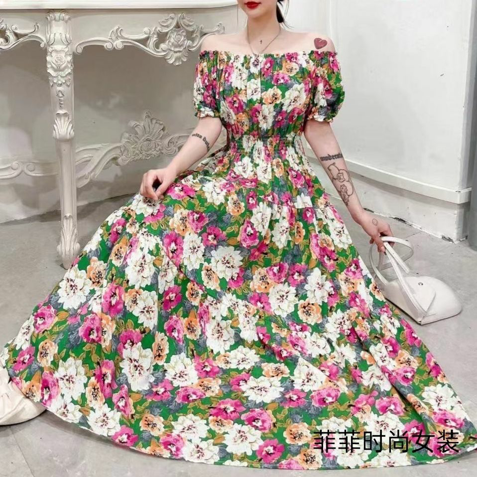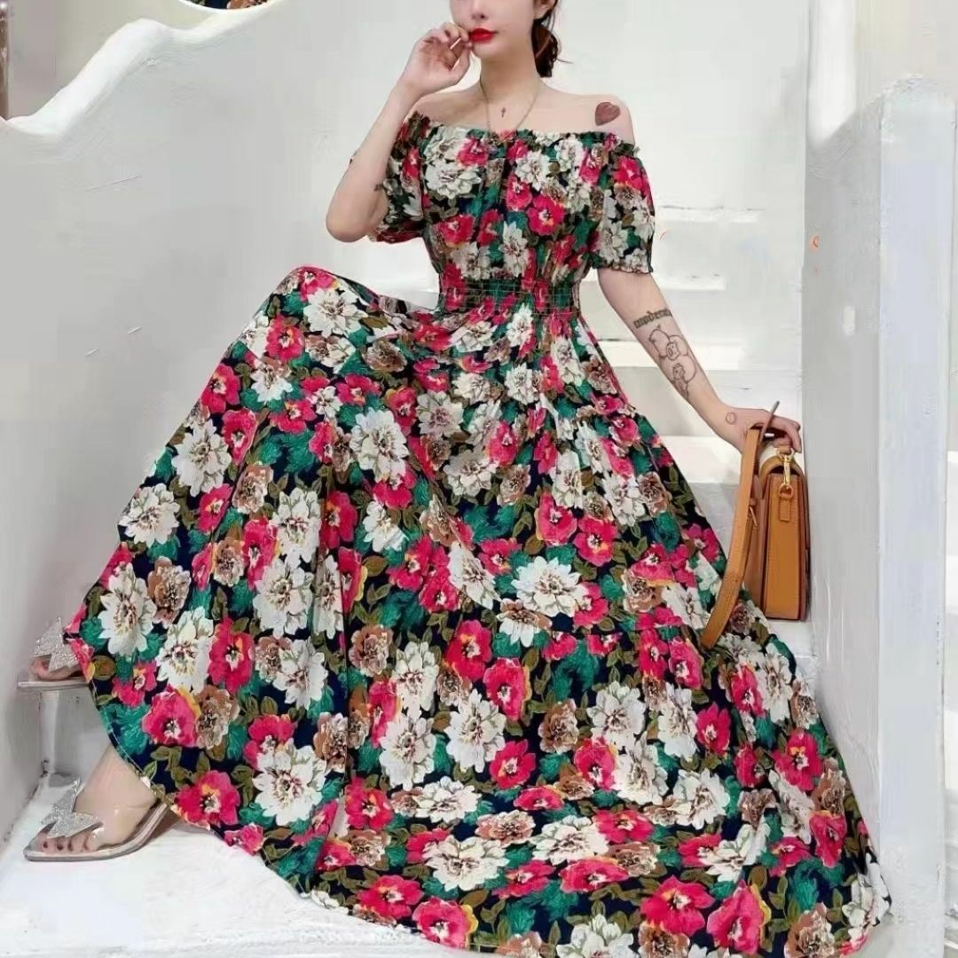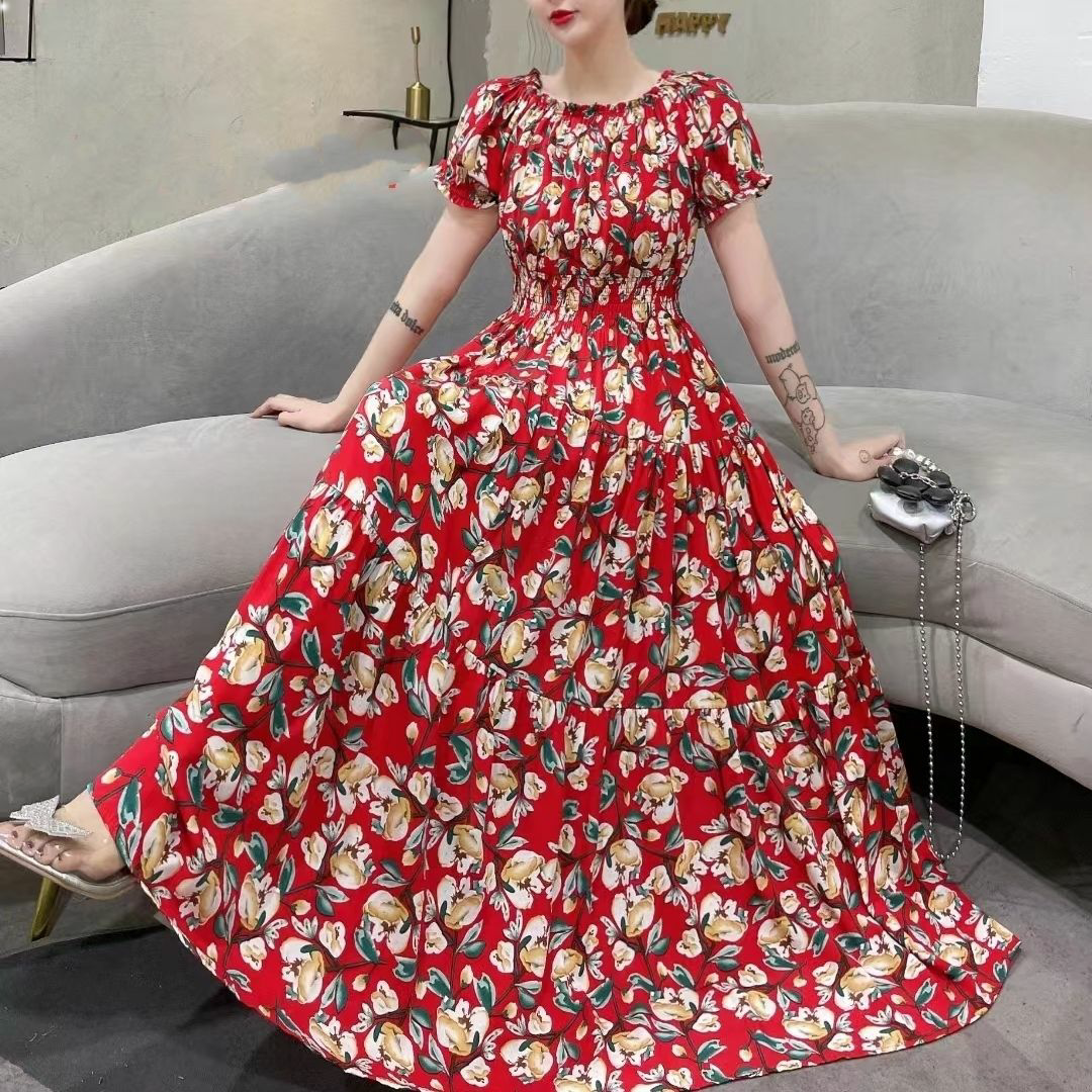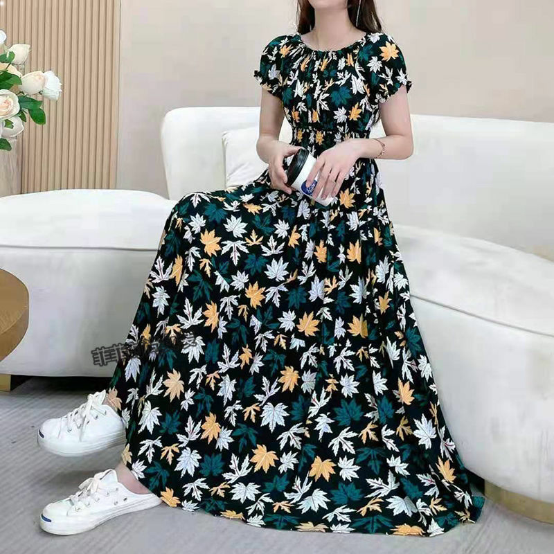 棉绸连衣裙印花裙子2023夏季新款人棉碎花裙女长款大摆裙时尚潮流