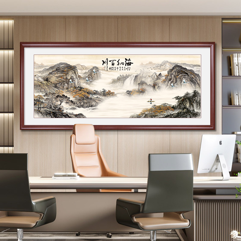 海纳百川办公室挂画国画中式风格