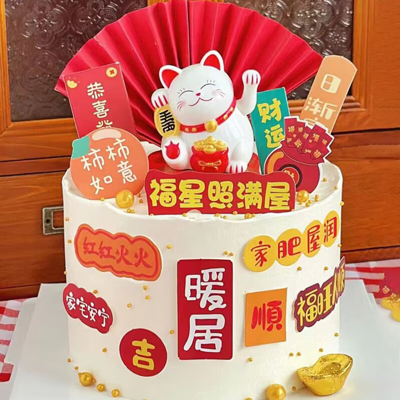 淘宝义乌小仙女烘焙装饰批发,招财猫蛋糕装饰摆件乔迁之喜暖居家肥屋润插牌搬新房蛋糕插件装扮