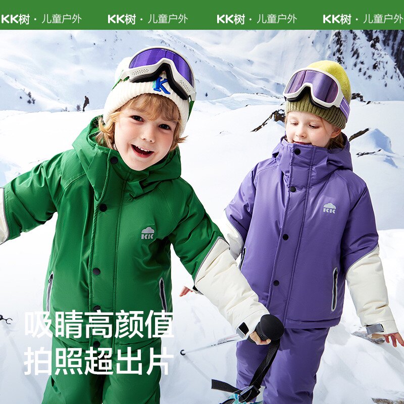 淘宝小花椒家,KK树2023冬季新款儿童两色户外滑雪服加厚保暖防风防水运动单板