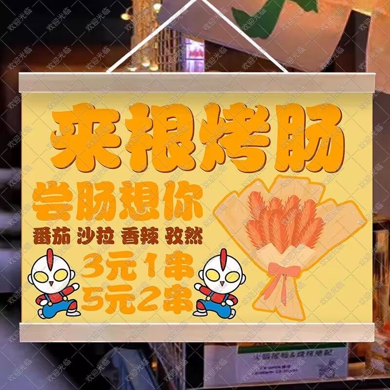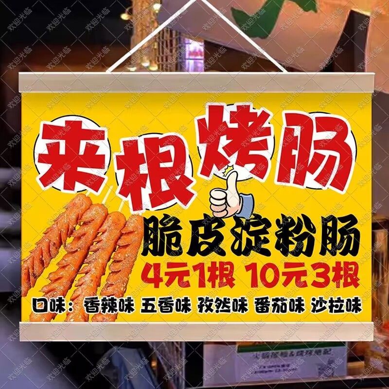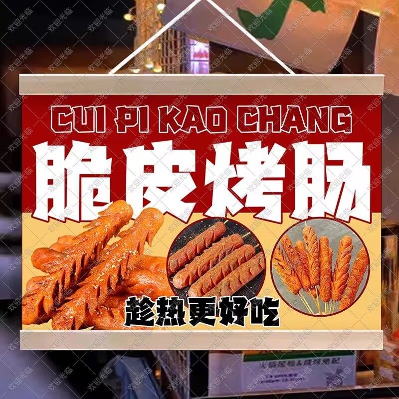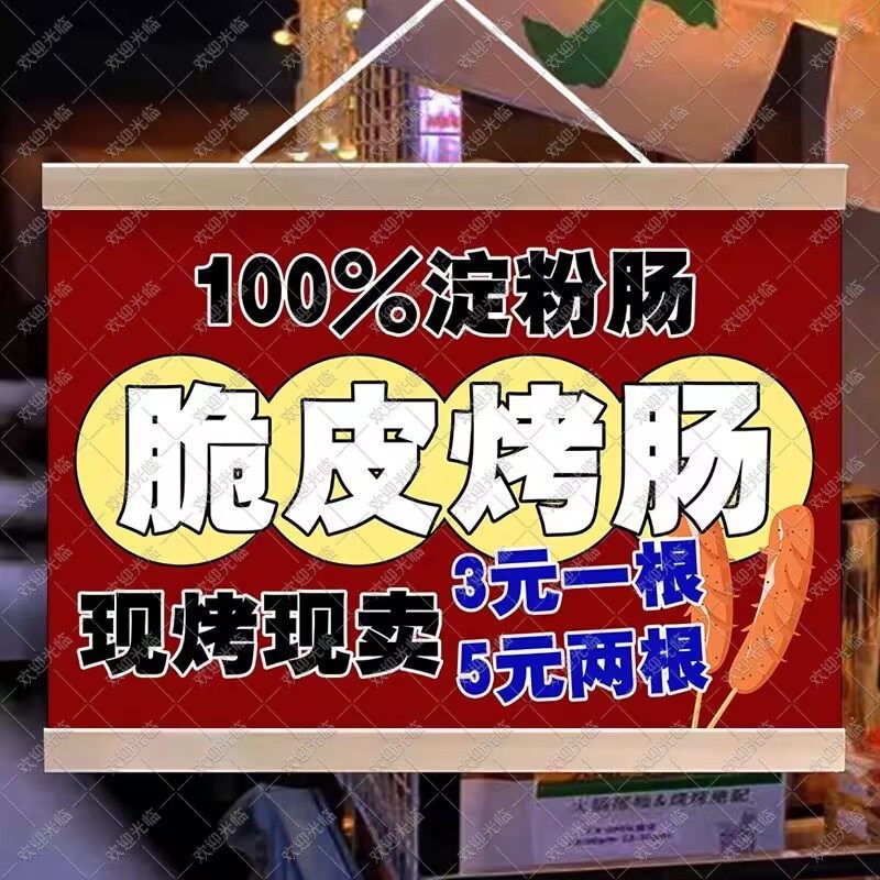 淘宝小白菜布艺小百货,脆皮烤肠挂画摆摊广告布夜市小吃挂牌推车广告挂布火山石烤肠招牌