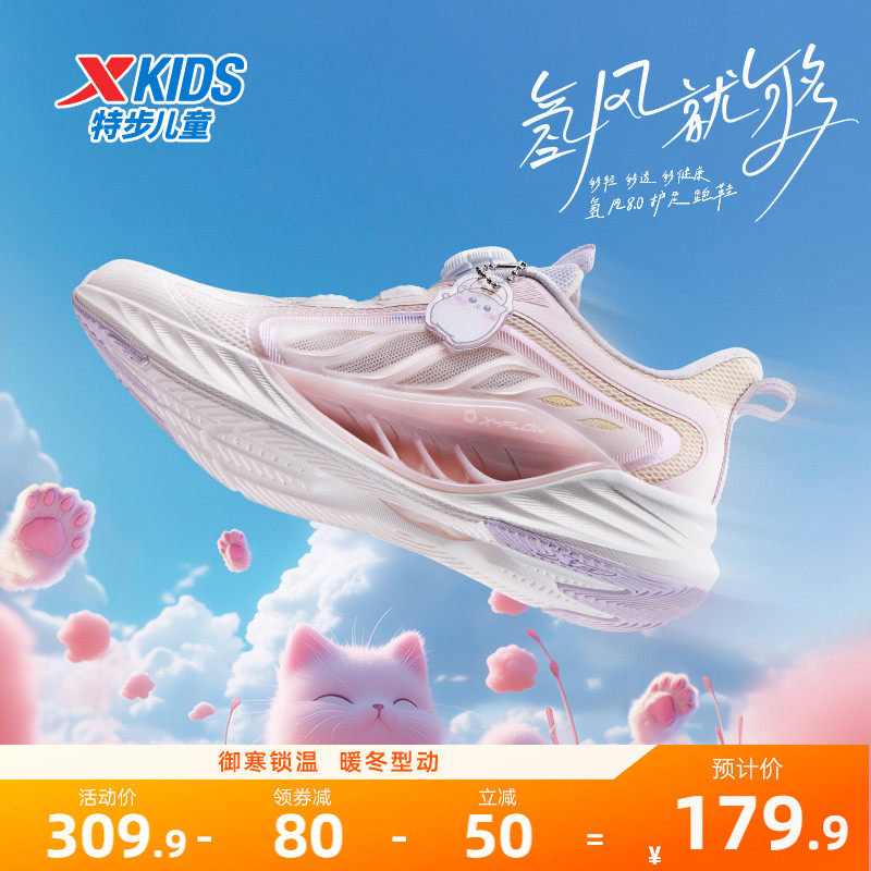 天猫特步童装旗舰店,氢风8.0特步儿童跑步鞋夏季新款女童宝宝运动鞋旋纽扣透气鞋子