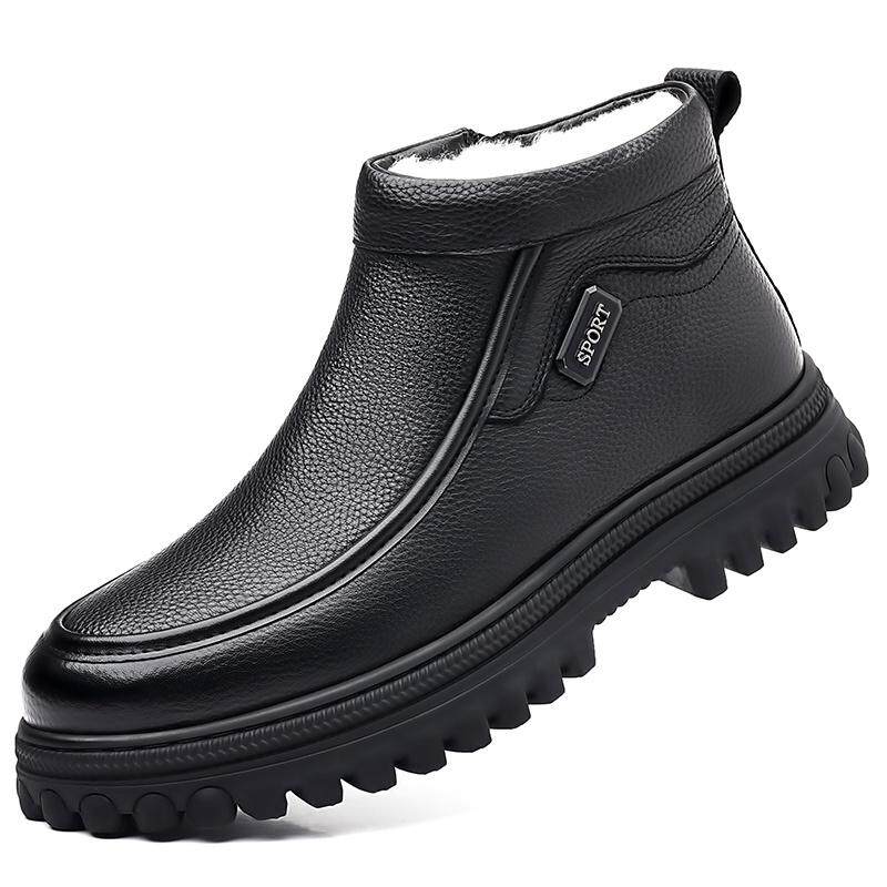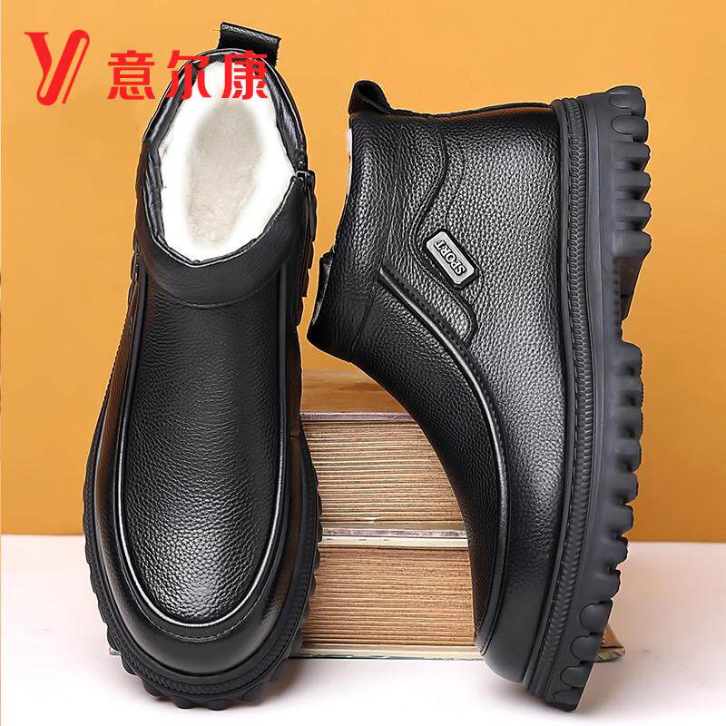 淘宝温州正品男鞋专柜,男鞋冬季加绒保暖羊皮毛中老年鞋