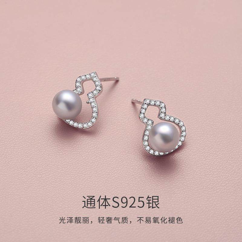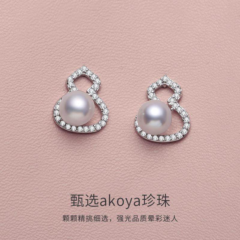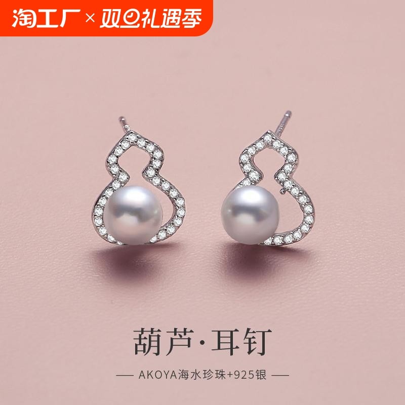 天猫淘工厂美妆直营,天然akoya海水珍珠耳钉真多麻色福禄耳环925银网红款耳饰节日礼物