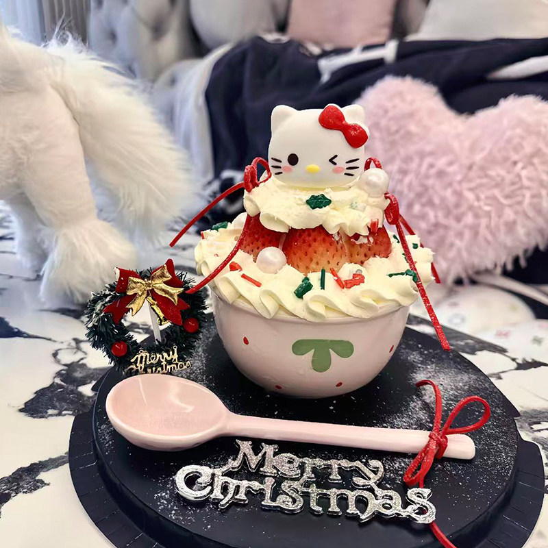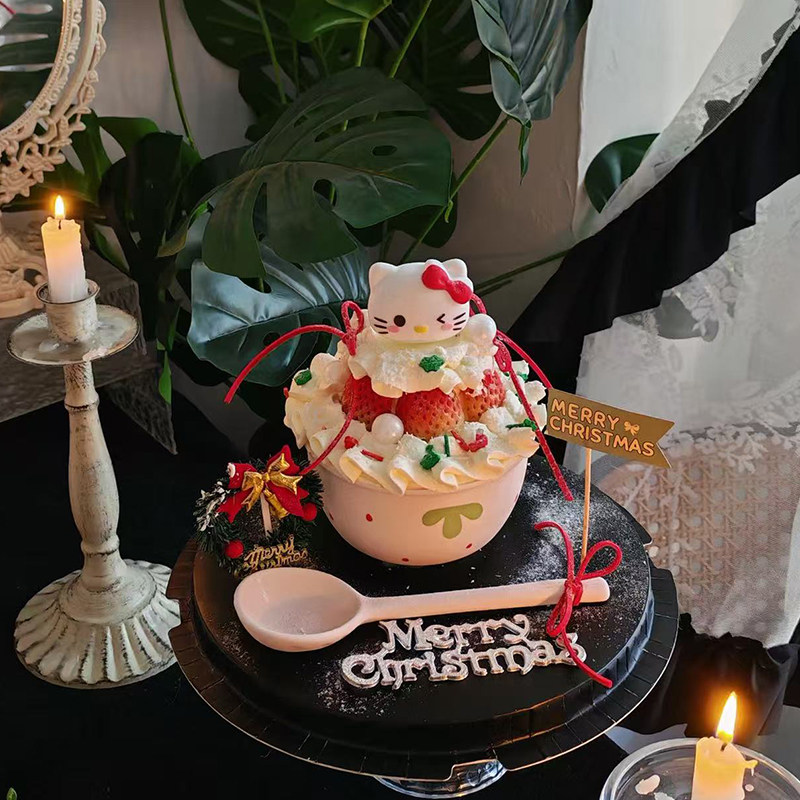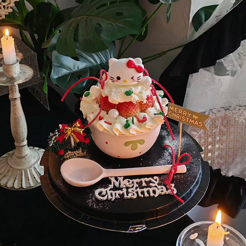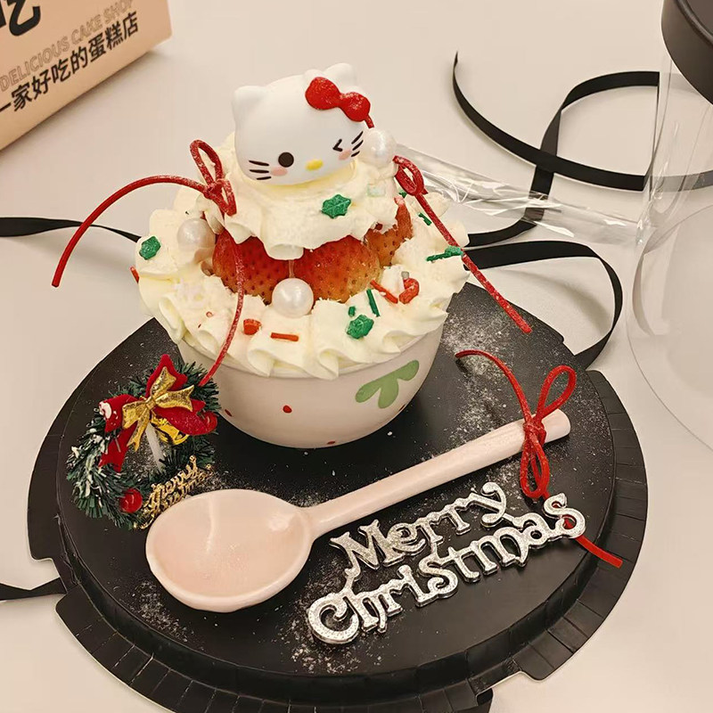 淘宝遇见你烘焙,2025圣诞节快乐hellokitty猫蛋糕装饰摆件草莓碗圣诞草圈装扮插件