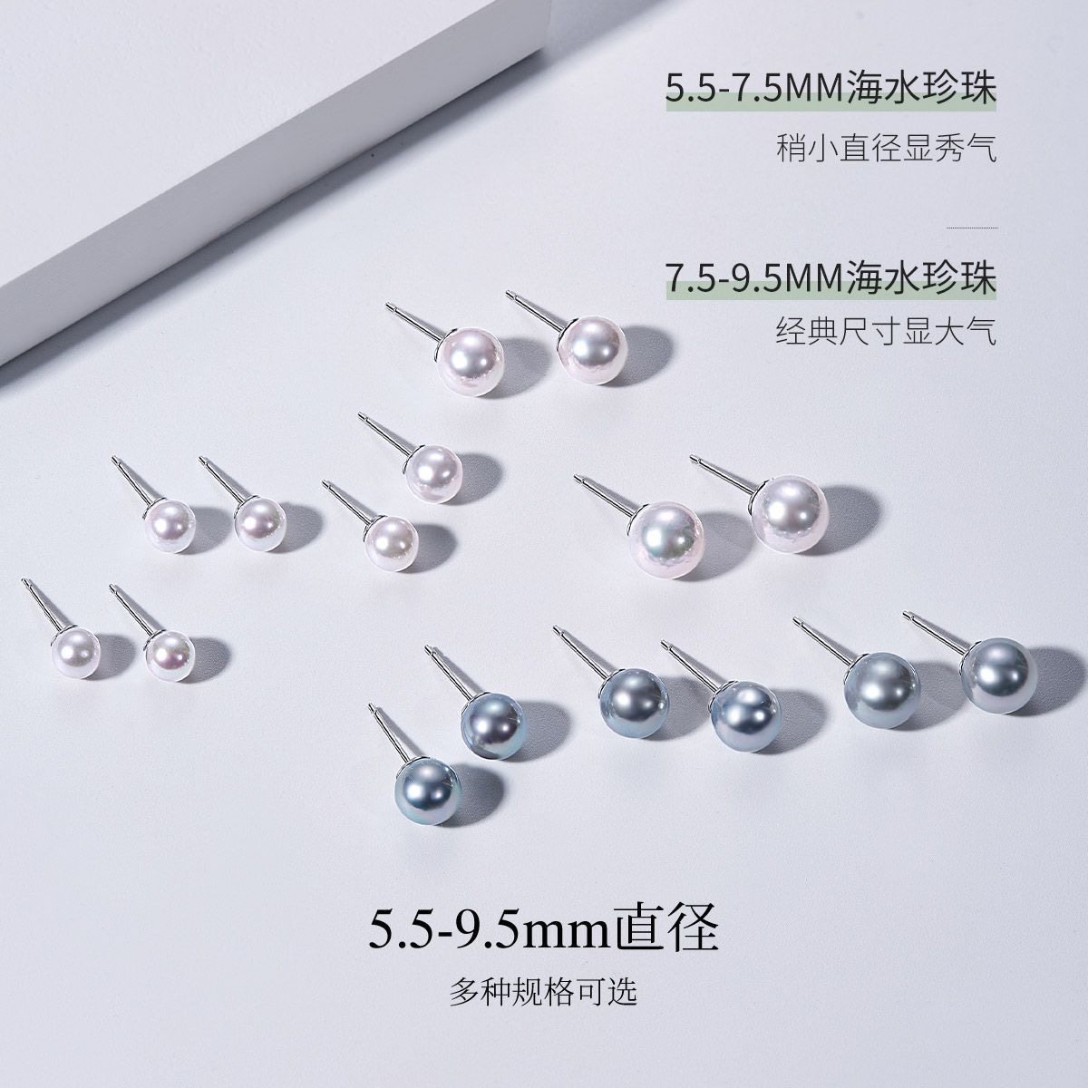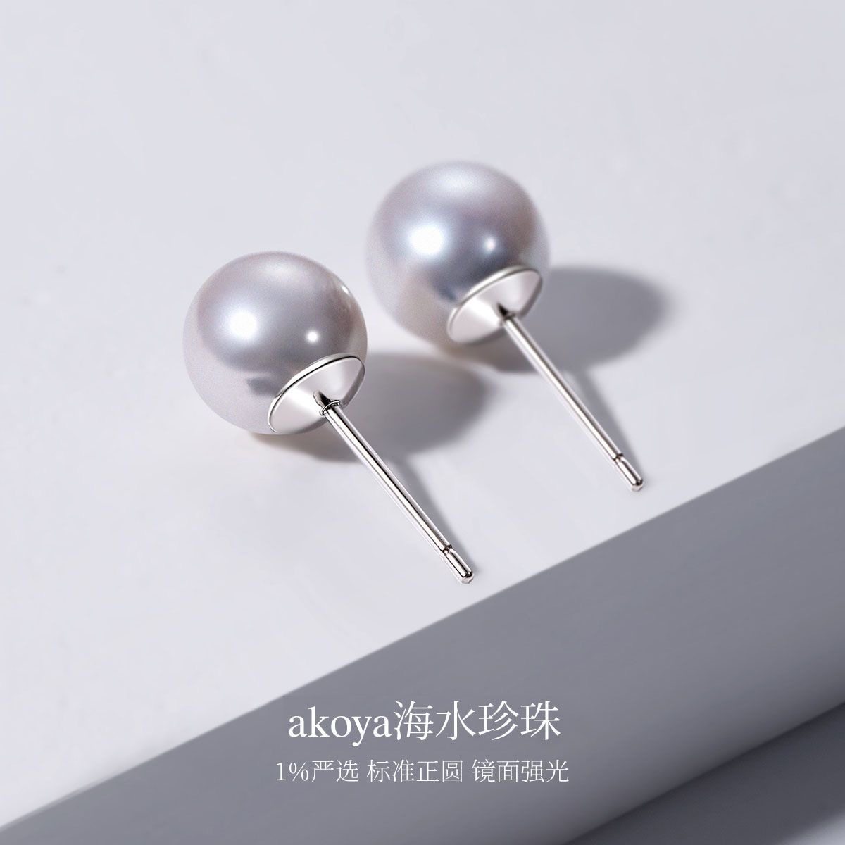 天猫1688官方工厂,海水珍珠耳钉女AKOYAs925银针耳环气质耳饰礼物精致高级珠宝小巧