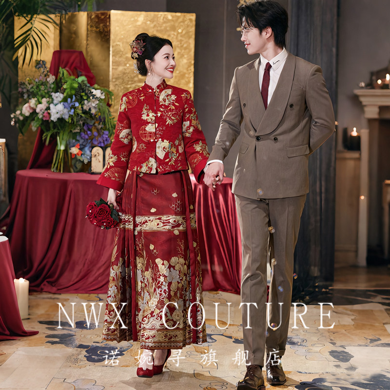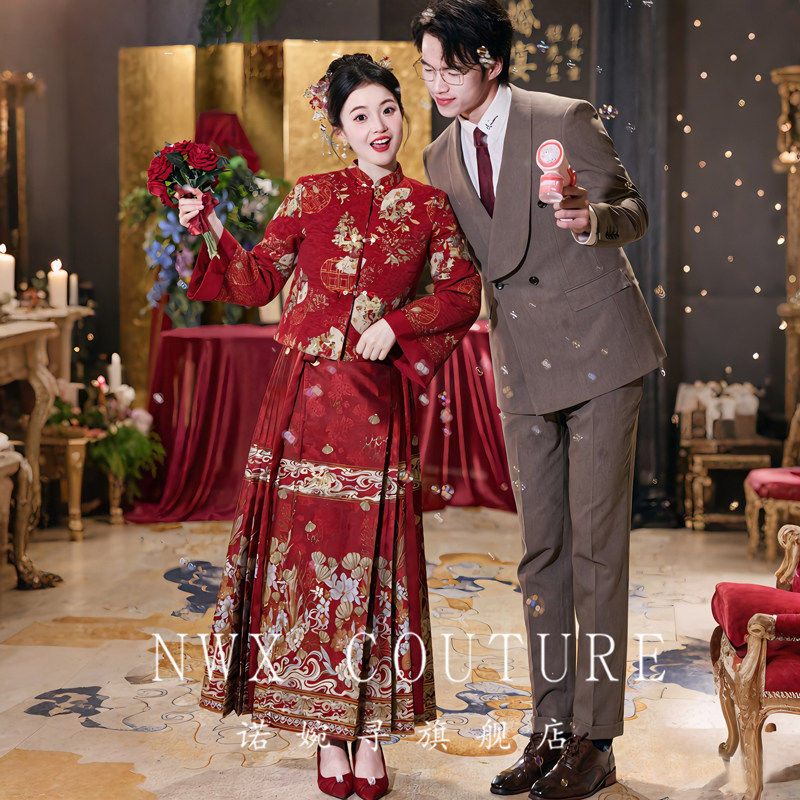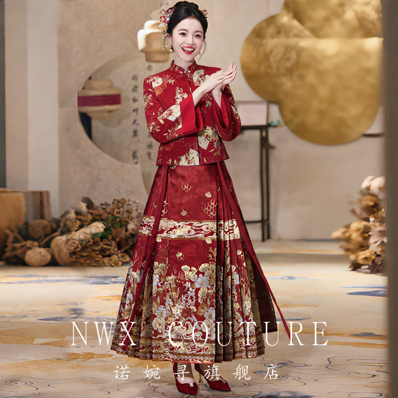 天猫诺婉寻旗舰店,红色马面裙2025新款新娘婚服套装订婚结婚敬酒服小个子拜年服女冬