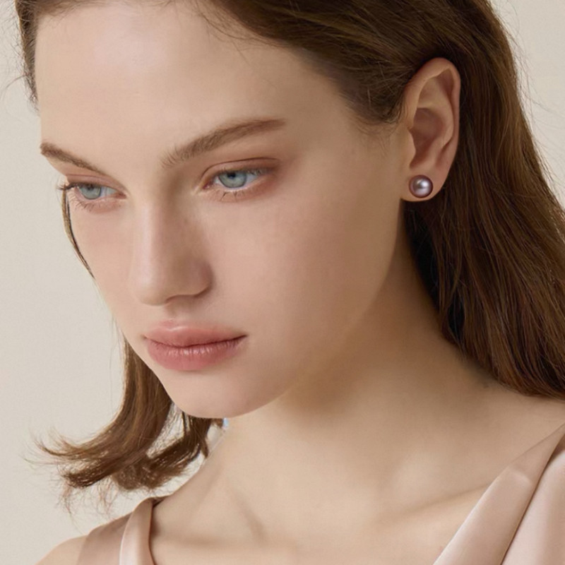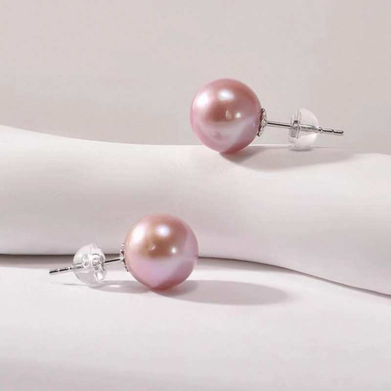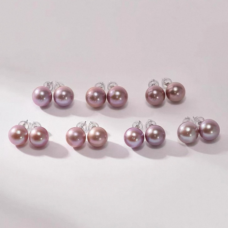 天猫1688官方工厂,诸暨淡水珍珠耳钉女S925银爱迪生紫色圆珠耳环气质简约高级感礼物