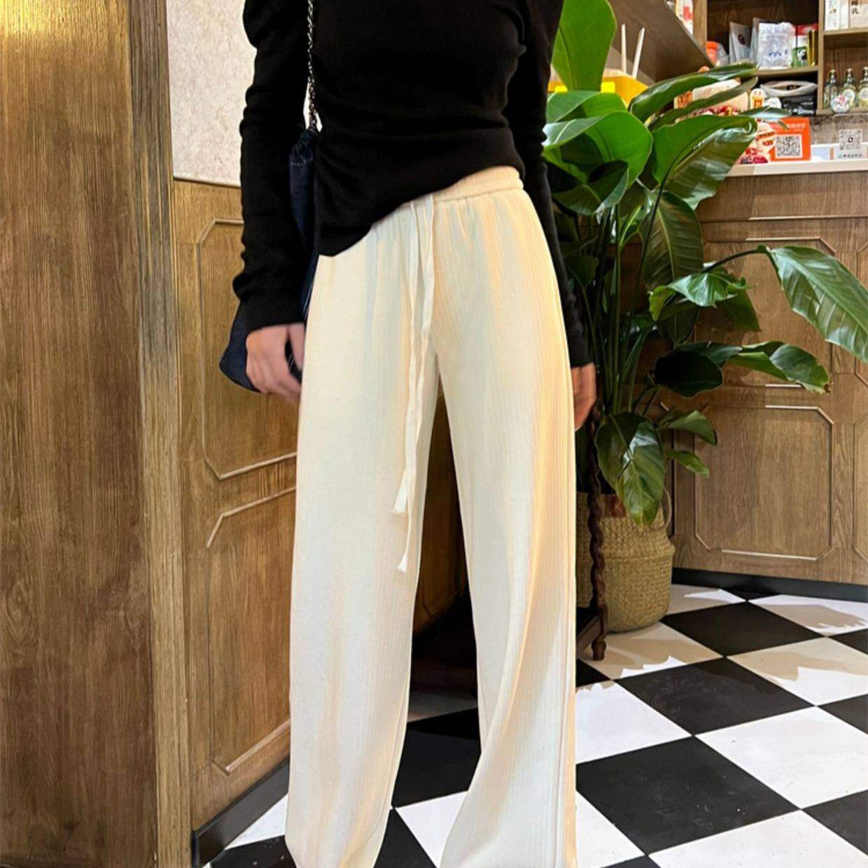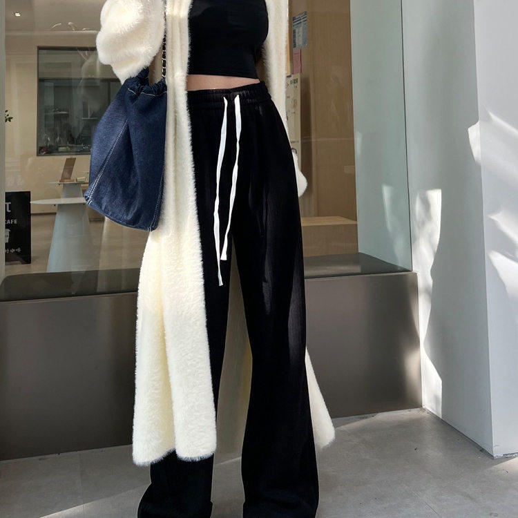 淘宝智炫商贸1的小店42,麦穗裤针织窄版阔腿裤女秋冬季加绒新款高腰垂感直筒休闲裤子xw