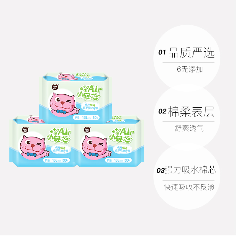 天猫国际自营进口超市,猫小菲纯棉透气护垫*3包,纯棉透气 轻薄护垫