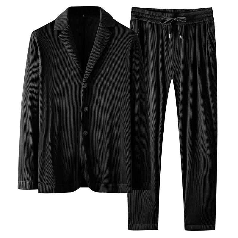 高端春夏季西装休闲套装男士冰丝弹力薄款痞帅休闲西服套装男宽松