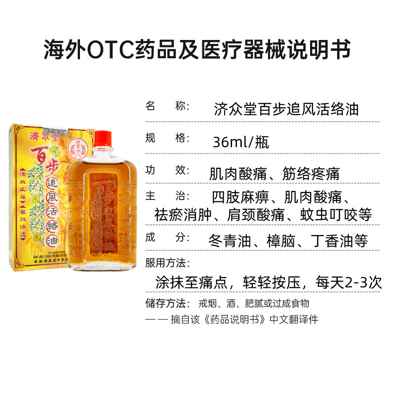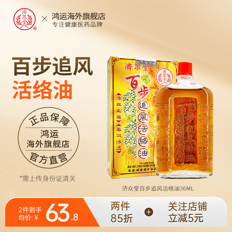 天猫鸿运海外旗舰店,中国香港进口济众堂百步追风活络油,止痛消肿 跌打驱风 祛湿筋骨