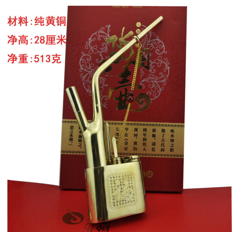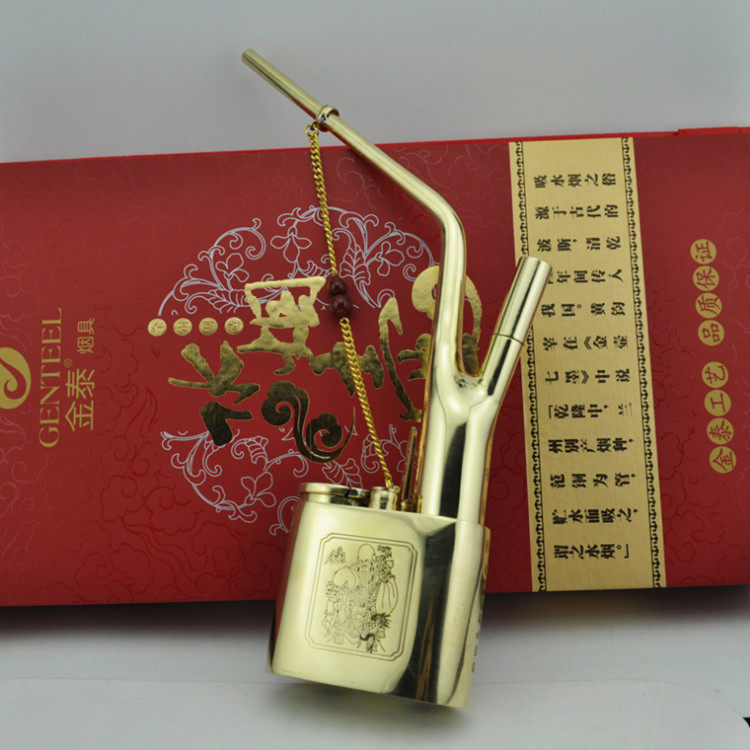 淘宝金泰烟具工厂直销店,金泰纯黄铜复古老式加厚烟袋水烟筒