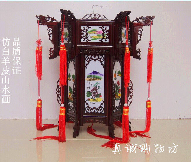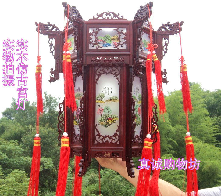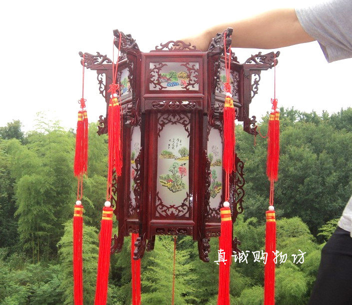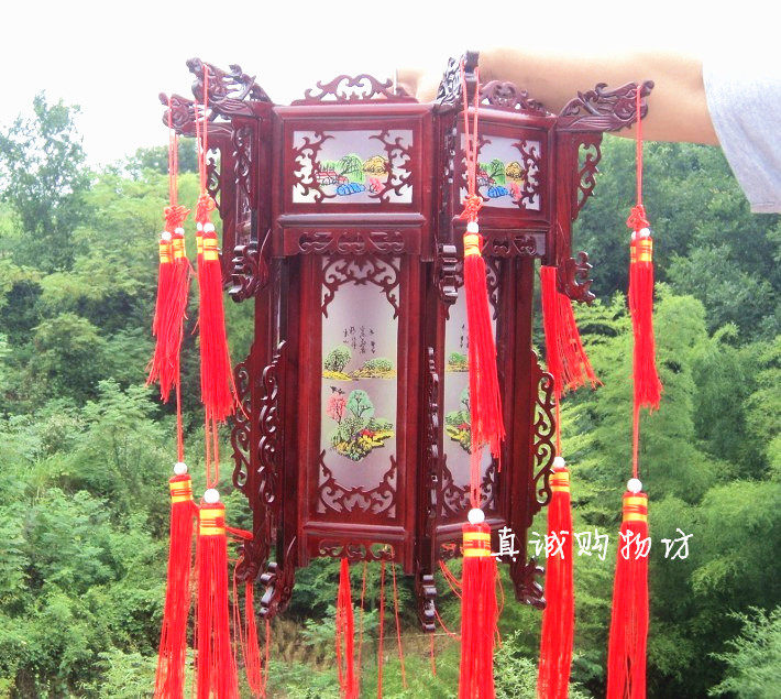 淘宝阿梅小屋,厂家直销六角仿古木质大红灯笼吊灯