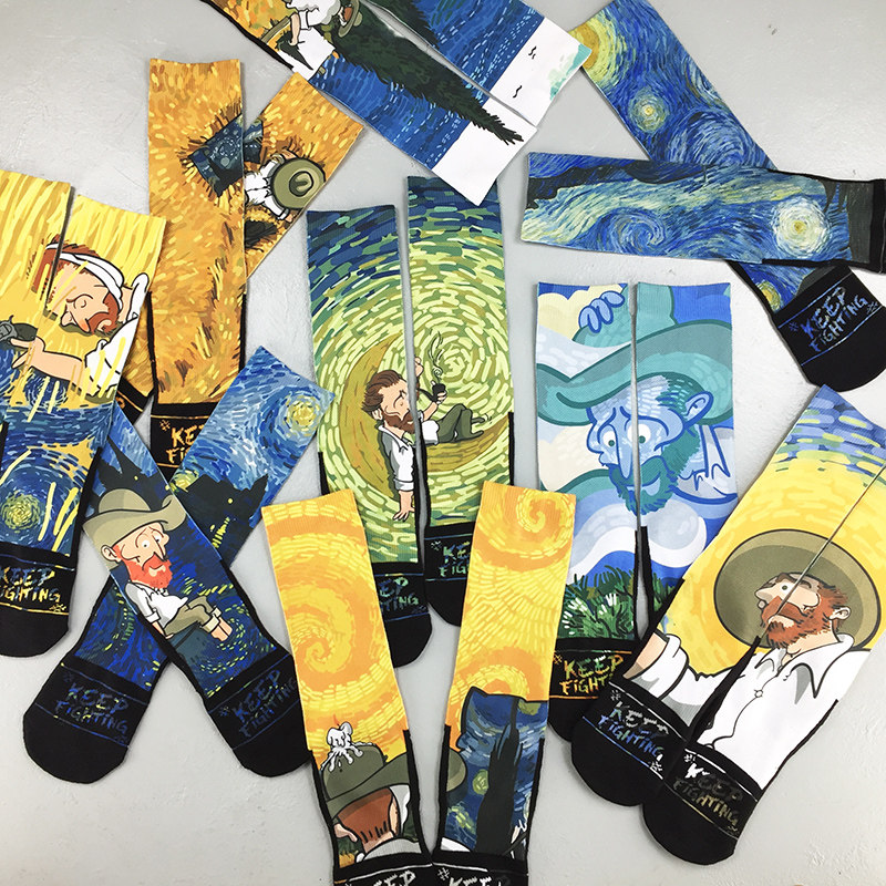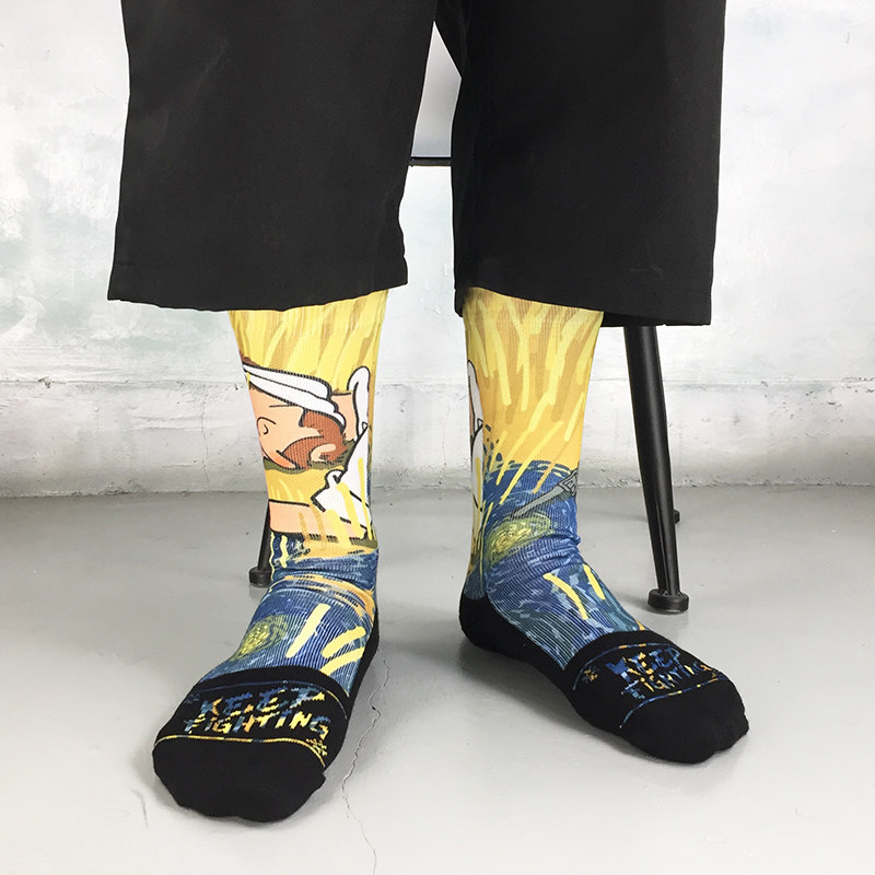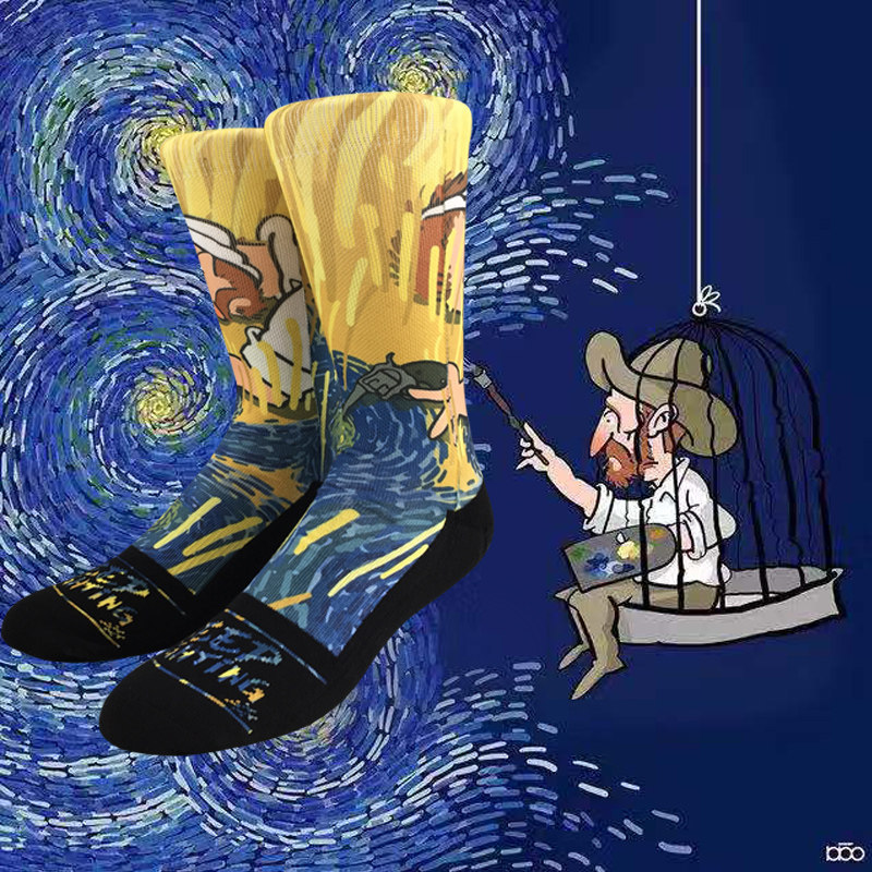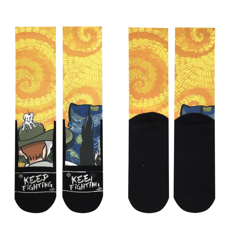 淘宝山冬子袜行,毛巾底个性风插画中筒潮袜新品