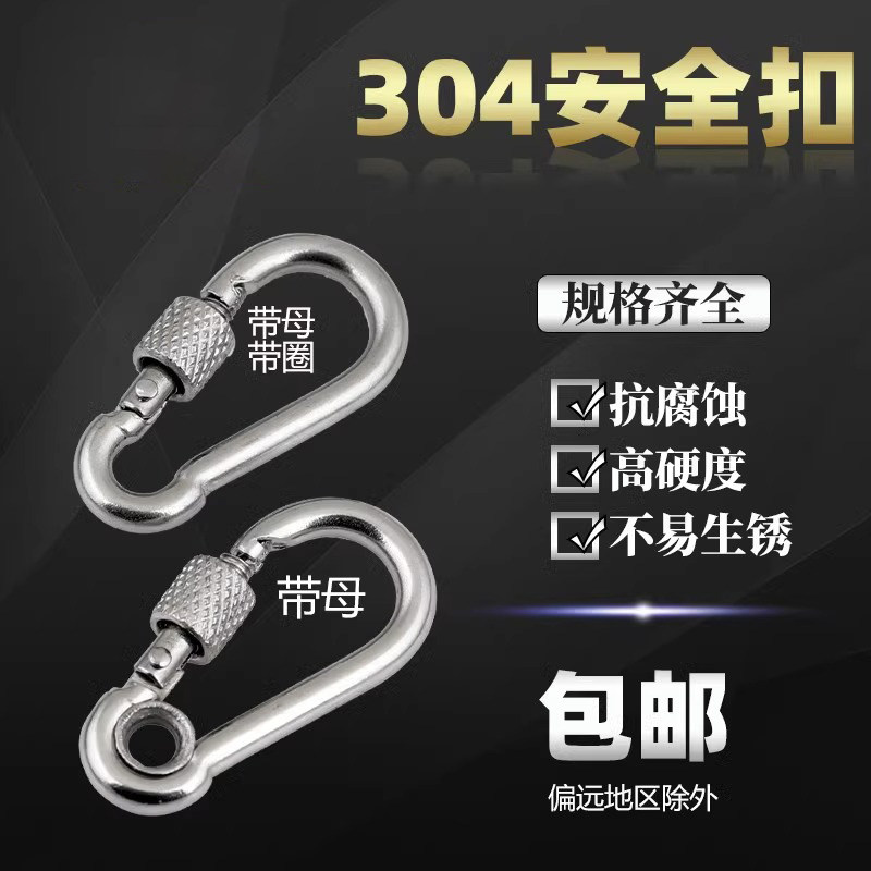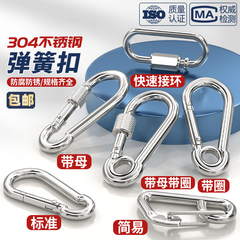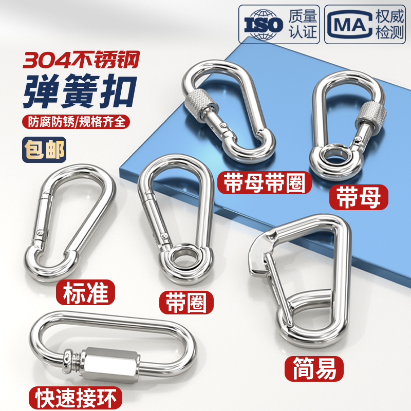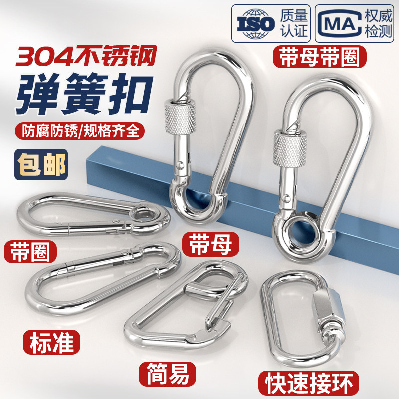 304不锈钢弹簧扣登山扣保险扣钥匙扣葫芦扣螺母弹簧带圈扣狗链扣