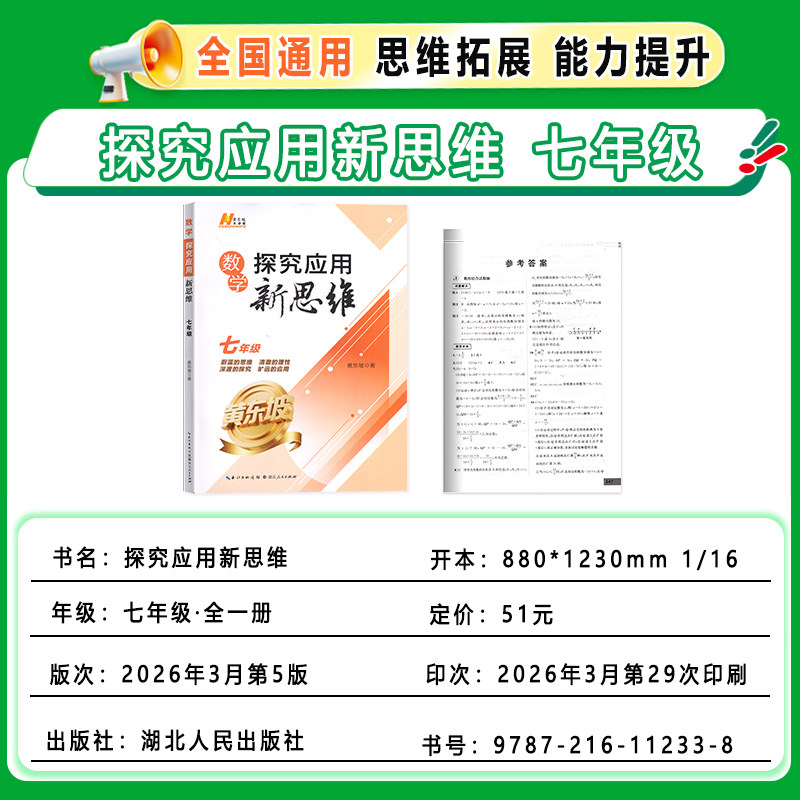 天猫金麦田图书专营店,2026新官方正版探究应用新思维 7七年级数学奥数培优竞赛新方法初一数学上下册七上应用题辅导提高试题解析初中数学思维训通用版