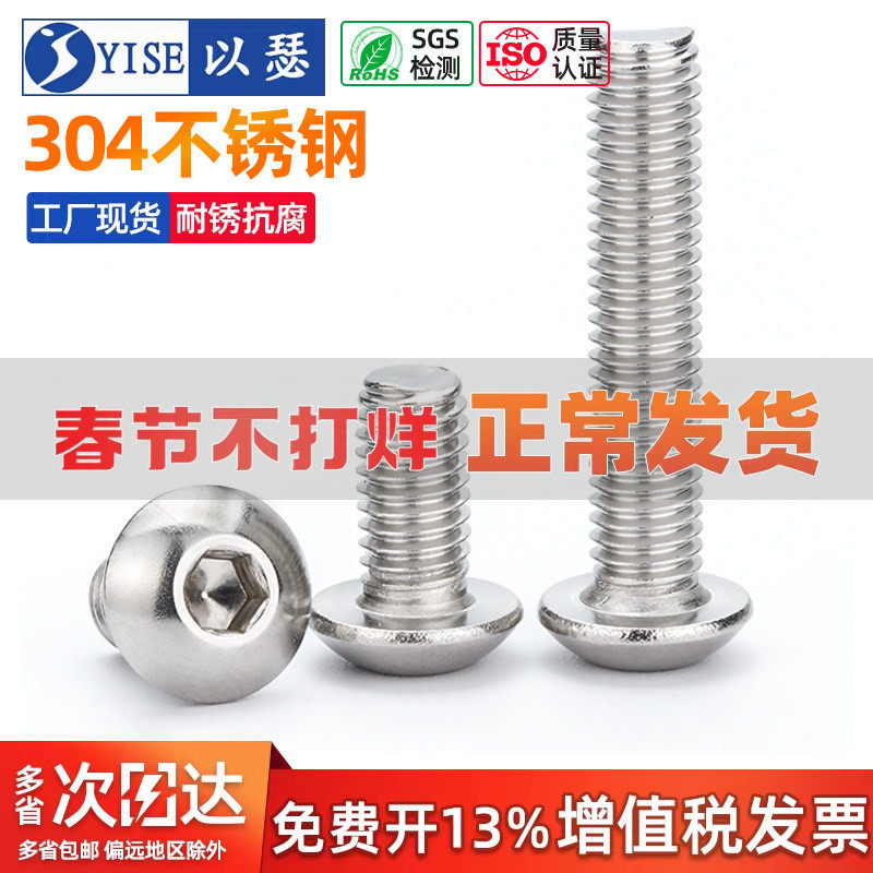 天猫以瑟旗舰店,【13%专票】304圆头内六角螺丝,304材质 支持检测 ROHS认证 质量保证