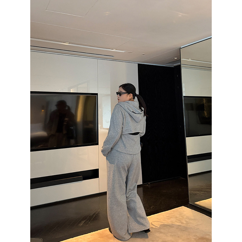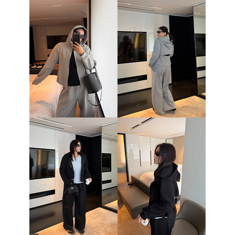 淘宝QBXX STUDIO 铅笔小鑫的店,铅笔小鑫大码女装显瘦CP春日套装连帽开衫+阔腿长裤