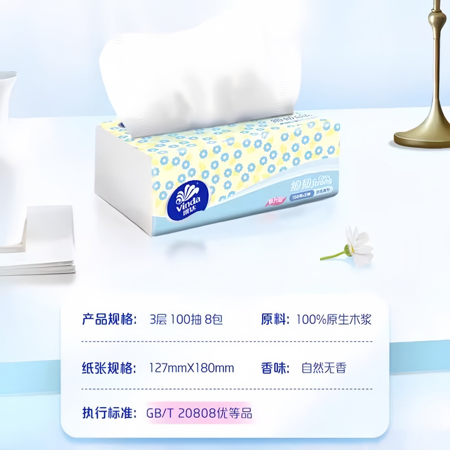 维达抽纸3层100抽大包纸巾券后价¥5.9浩久家居专营店 3 天前
