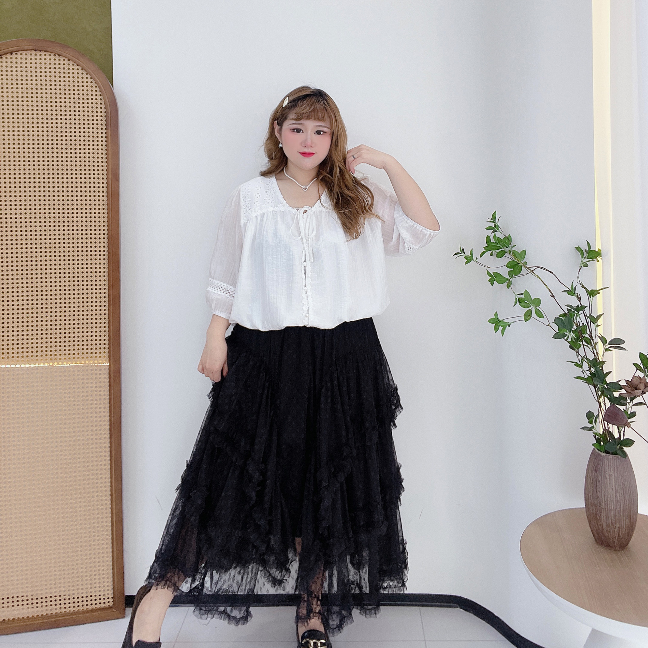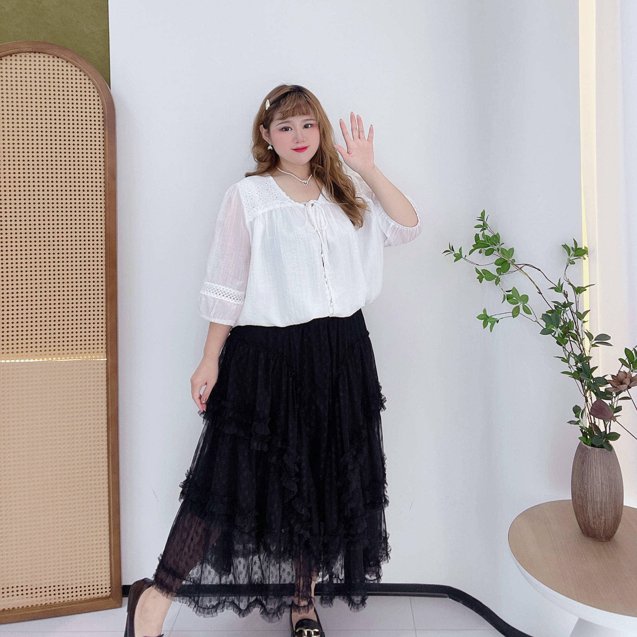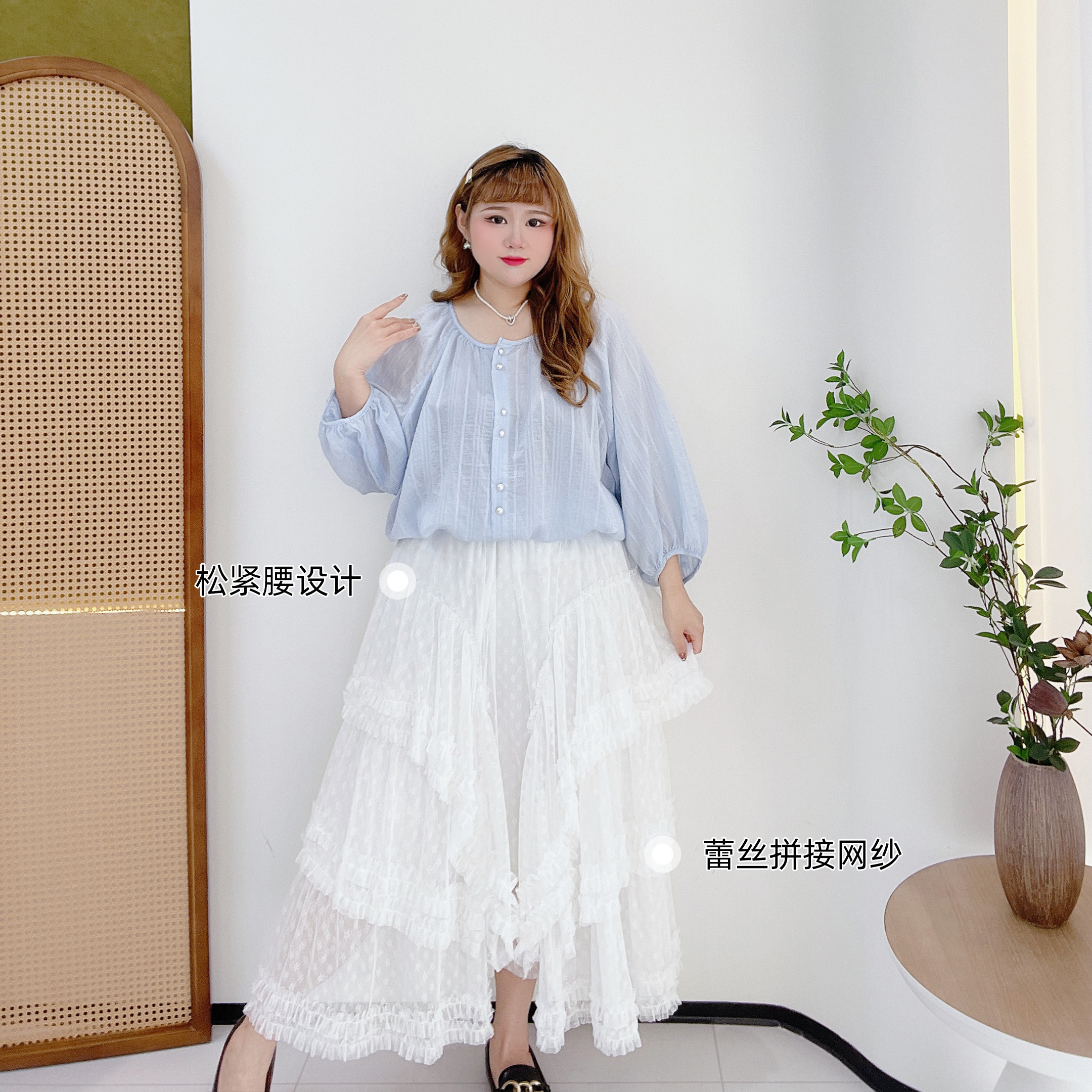 淘宝肉嘟嘟的胖莹莹大码女装,大码甜美蕾丝网纱蛋糕裙半身裙