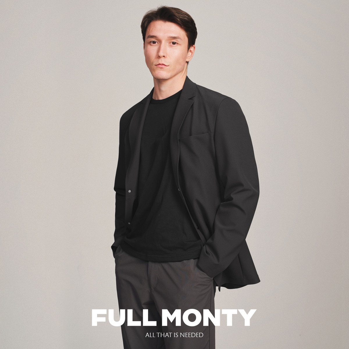 FULL MONTY新款休闲西服男士弹力运动西装外套黑色简约秋季上衣