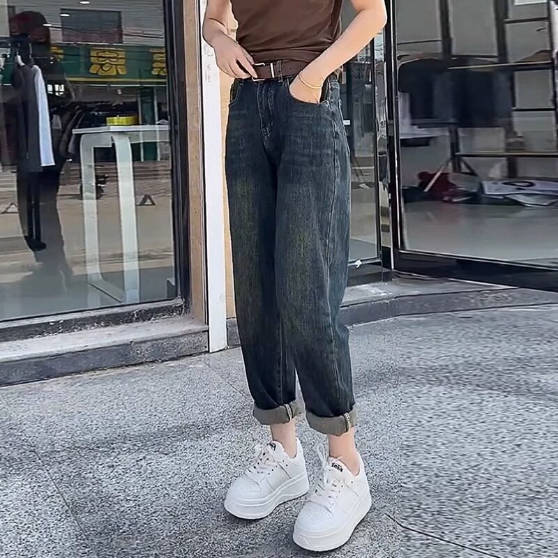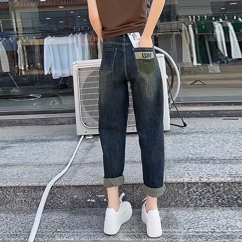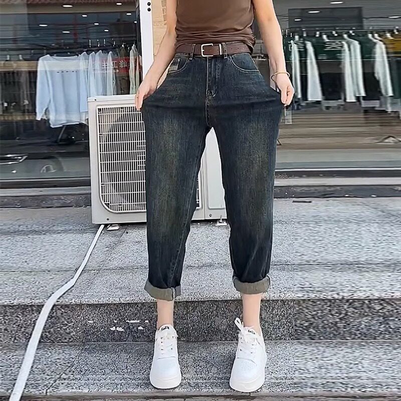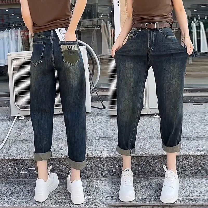 高腰显瘦哈伦牛仔裤2024年春季新款大码女装胖妹妹宽松弹力老爹裤