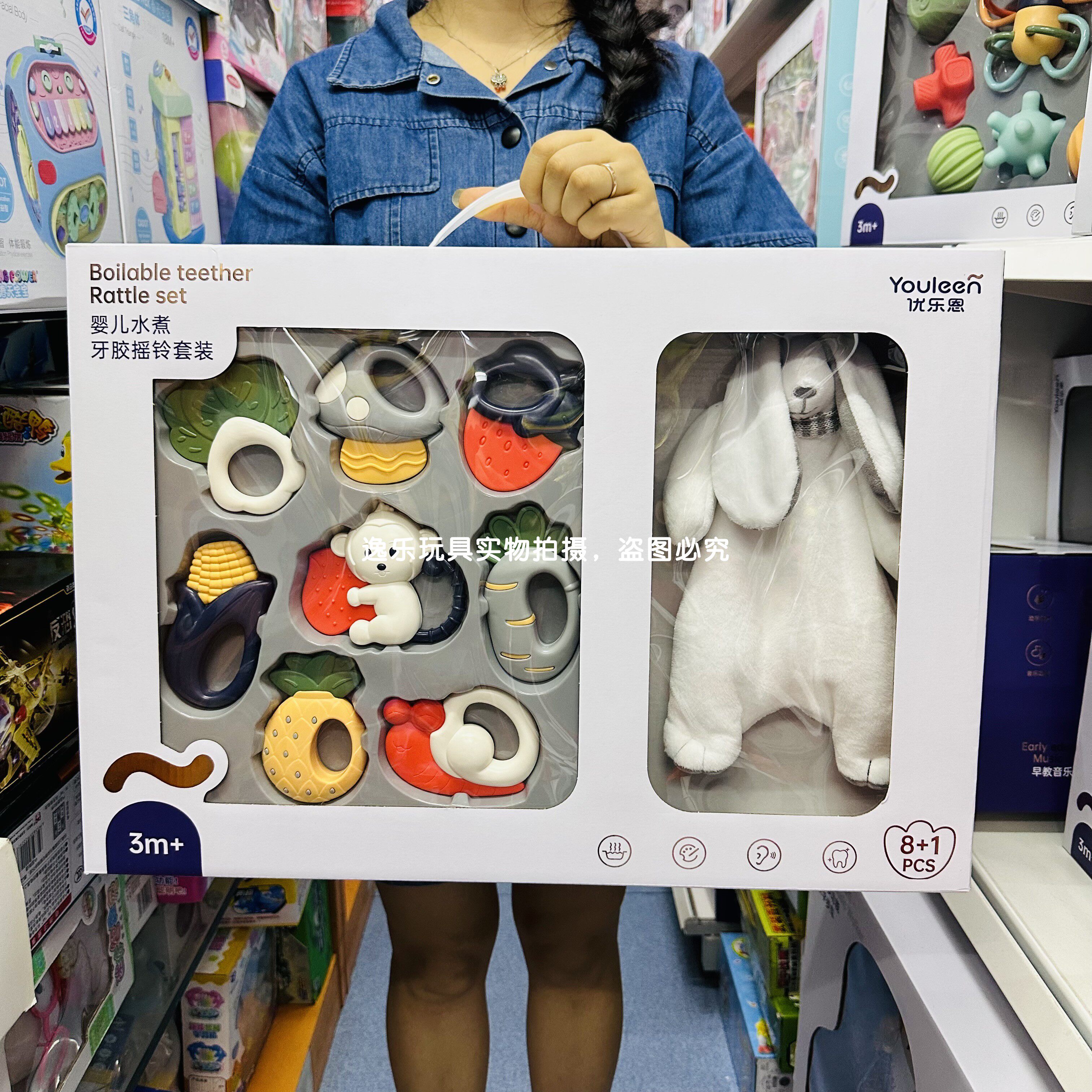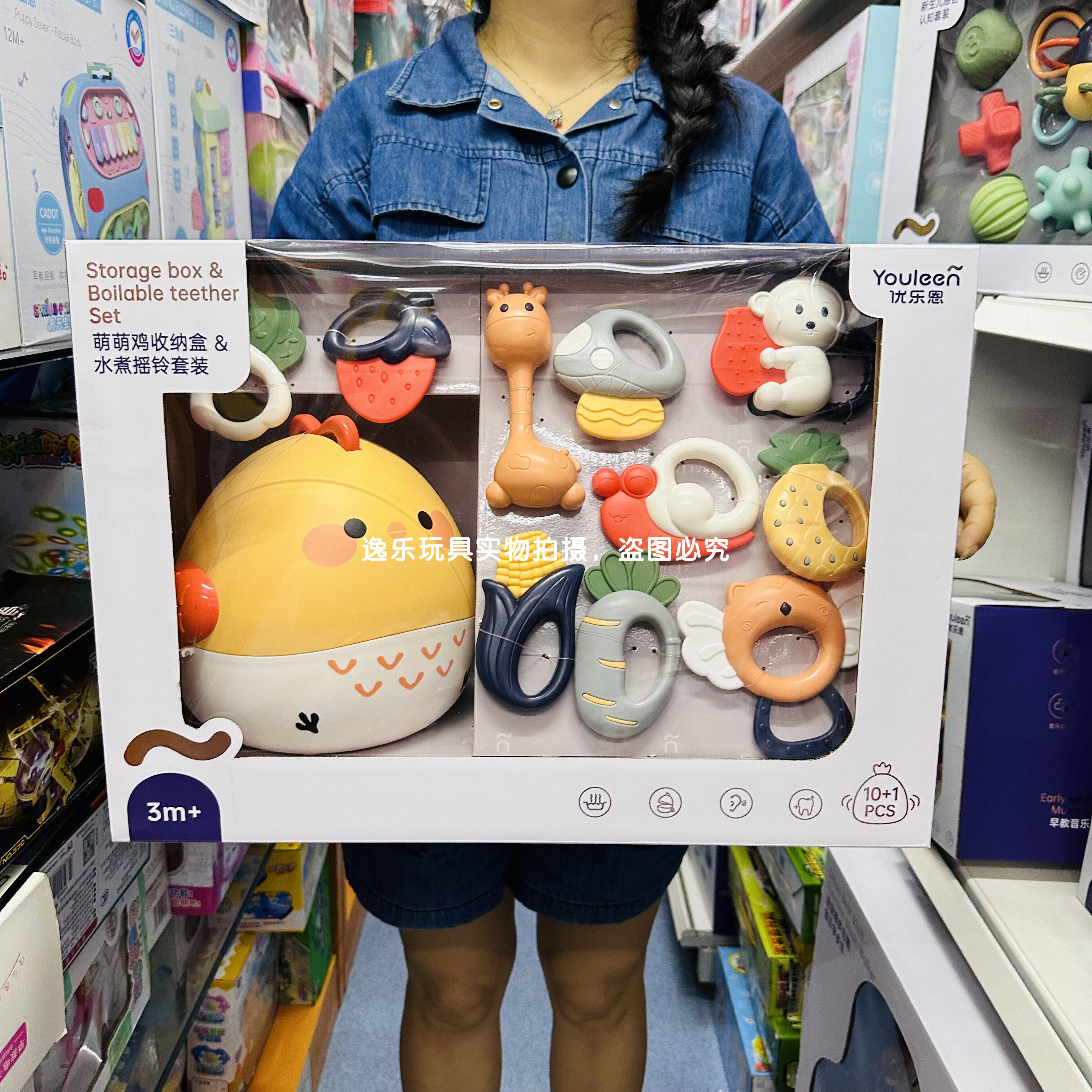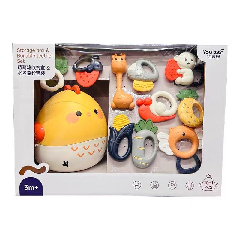 优乐恩萌萌鸡收纳盒水煮摇铃套装牙胶新生婴儿童礼物早教安抚玩具