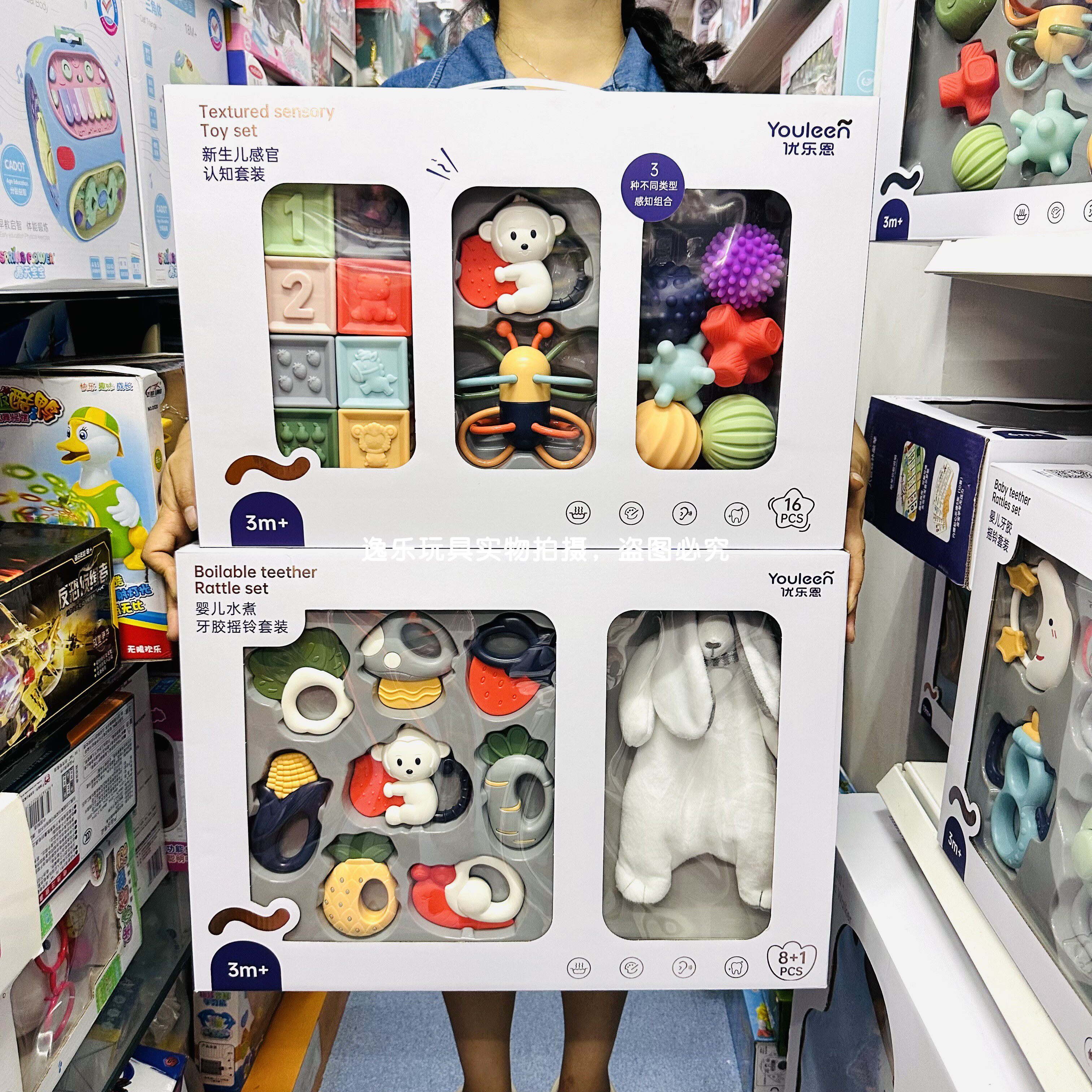 淘宝逸乐玩具,优乐恩萌萌鸡收纳盒水煮摇铃套装牙胶新生婴儿童礼物早教安抚玩具