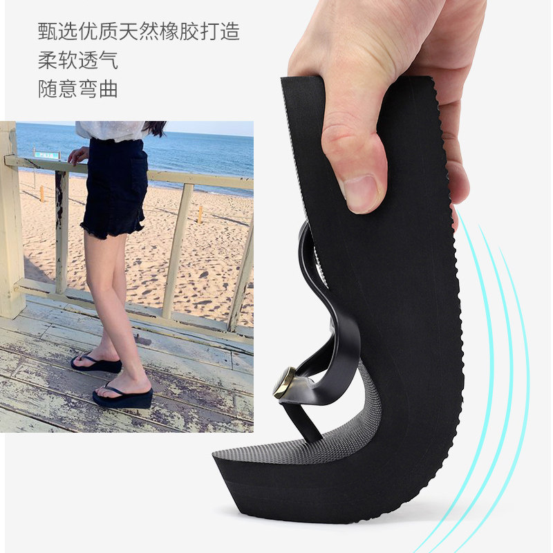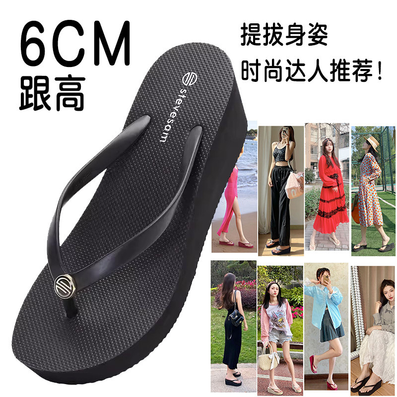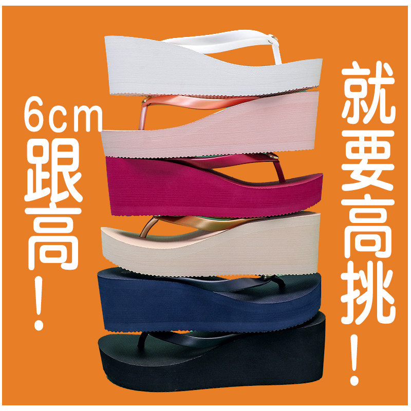 6cm高跟人字拖女夏时尚外穿海边防滑夹脚沙滩鞋简约坡跟厚底凉拖