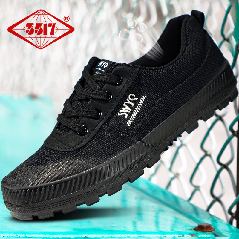 3517正品解放鞋男劳保鞋防滑耐磨工地胶鞋登山鞋工作鞋黑色帆布鞋