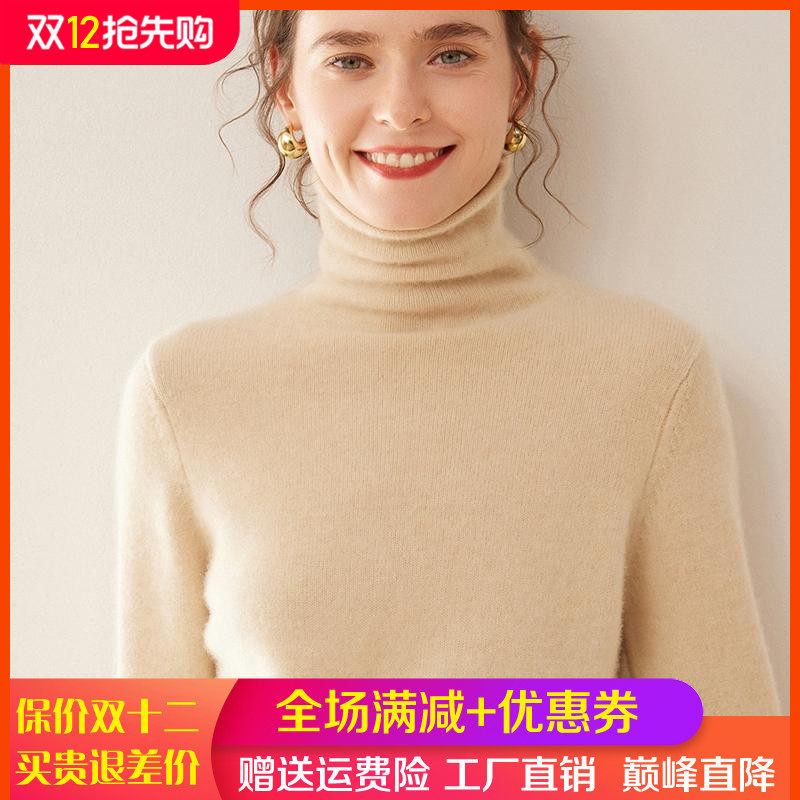淘宝梦茜韵高端羊绒衫工厂直销店,加厚100%纯山羊绒衫女堆堆领毛衣