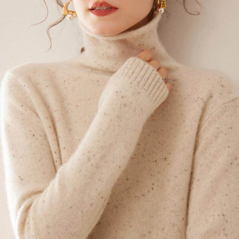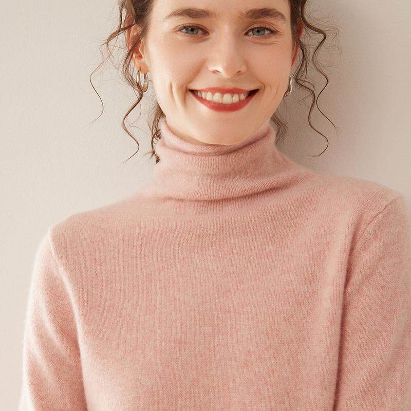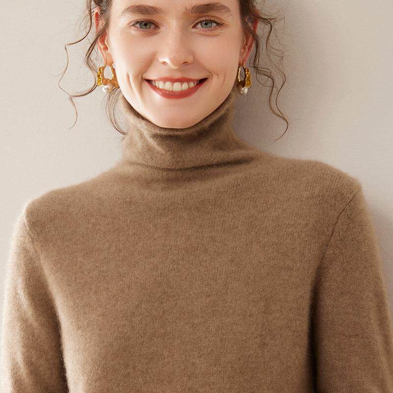 双股加厚100%纯山羊绒衫女堆堆领毛衣针织衫打底内搭宽松羊毛上衣