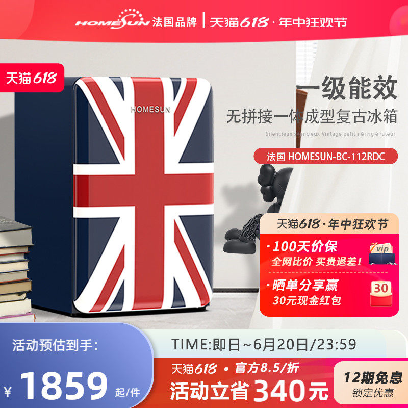 天猫奥达信旗舰店,法国HOMESUN复古一级能耗小冰箱,一级能耗,复古时尚高颜值